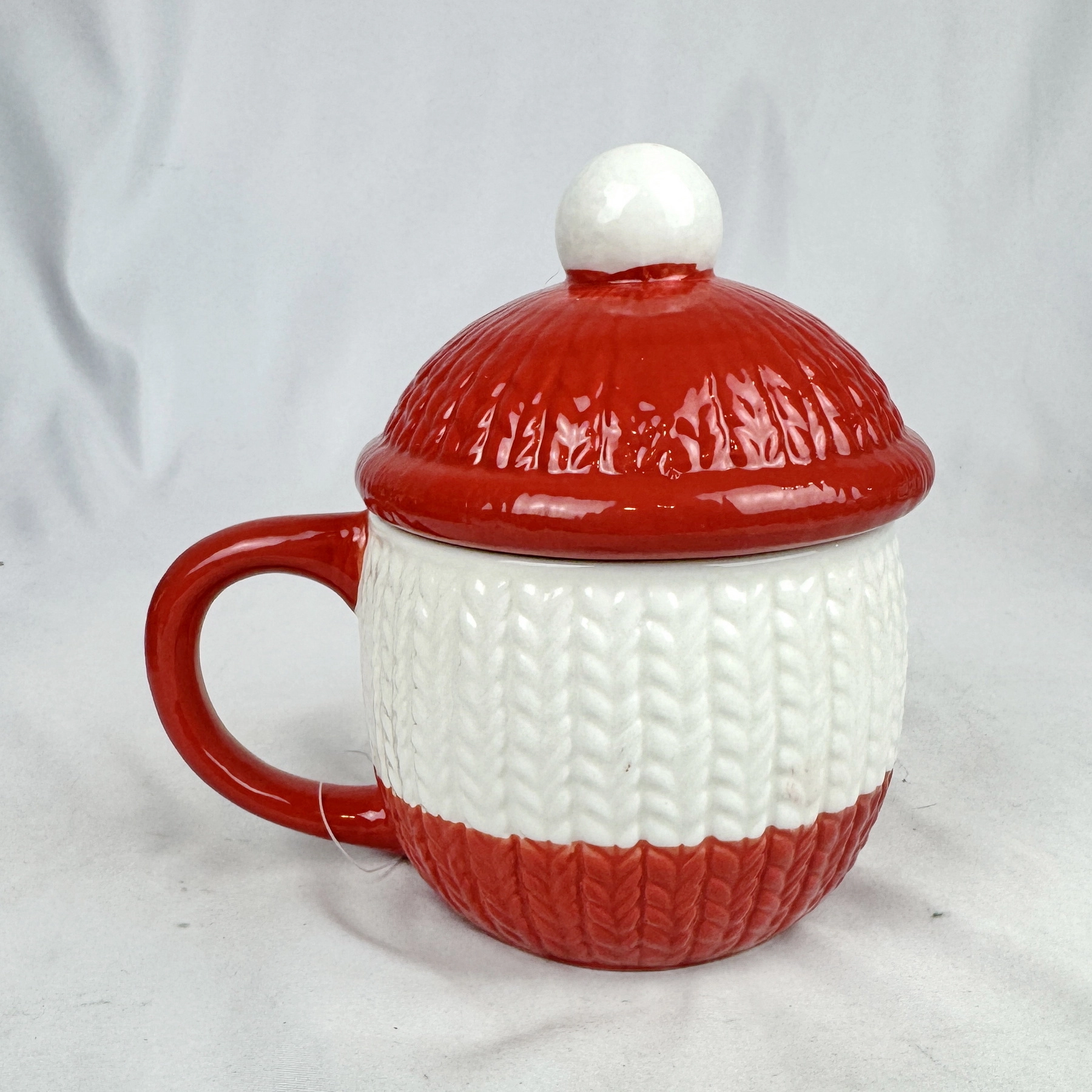 2025 Target Bullseye Playground Red White Knit Beanie Ceramic Mug Cup w Lid
