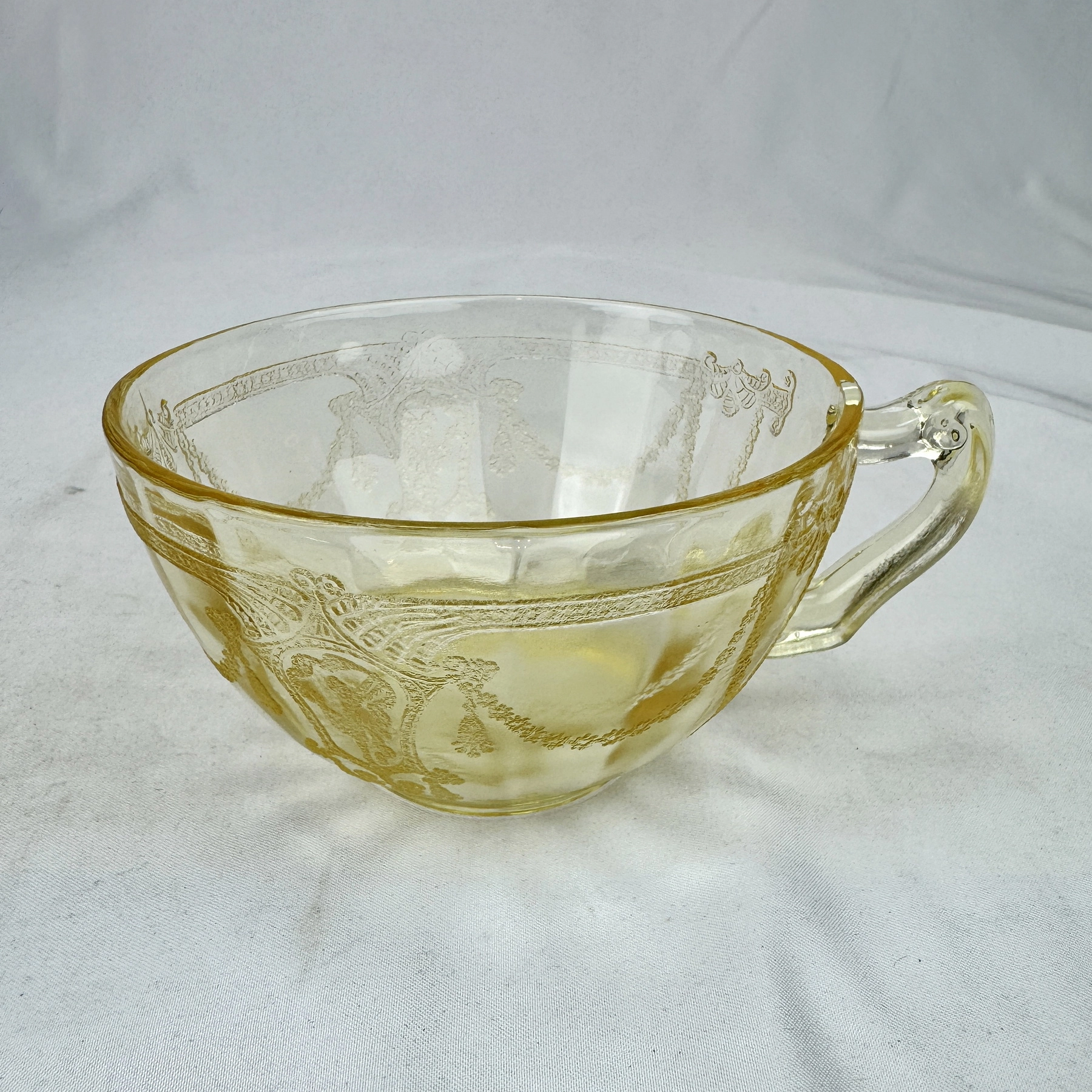 Anchor Hocking Cameo Yellow Scroll Handle Cup Depression Glass
