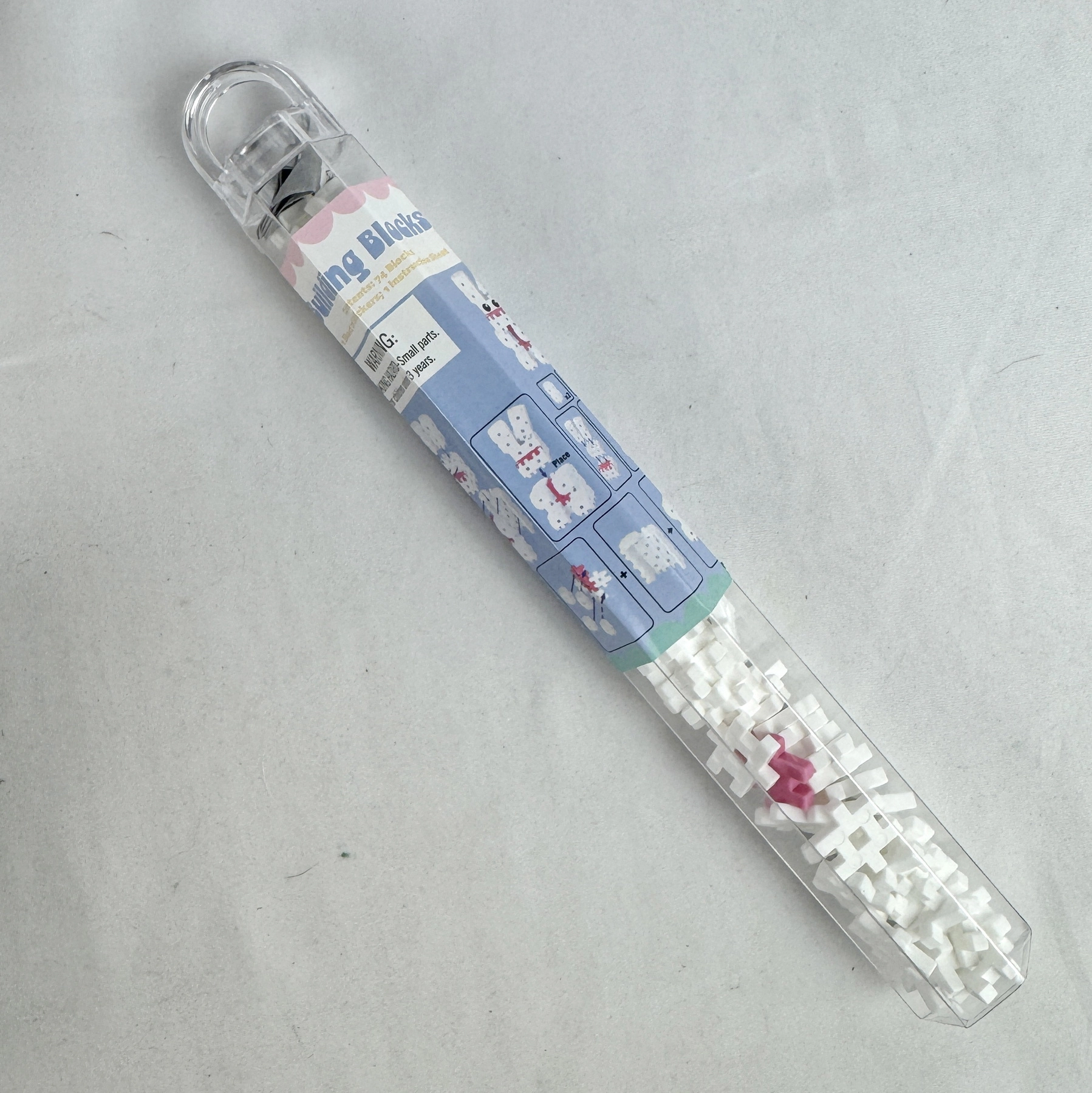 Bullseye Playground Easter bunny building blocks set in tube. Includes 74 pieces to build a bunny figure. New and sealed. Great small gift or seasonal toy.