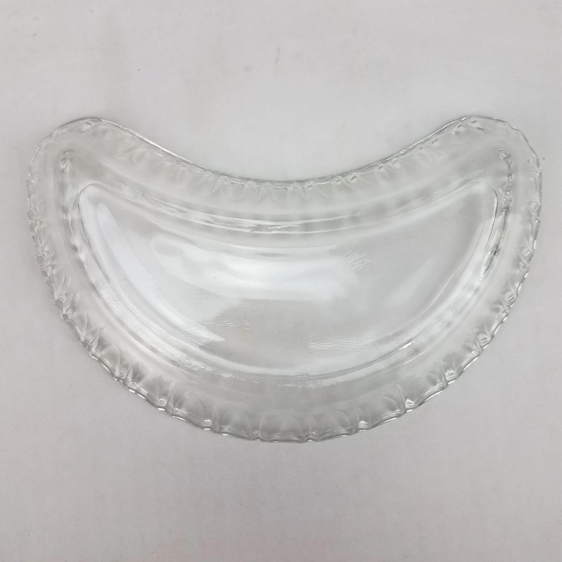 - Crescent Shape, Plain Base, Clear Glass, Ribbed Edge