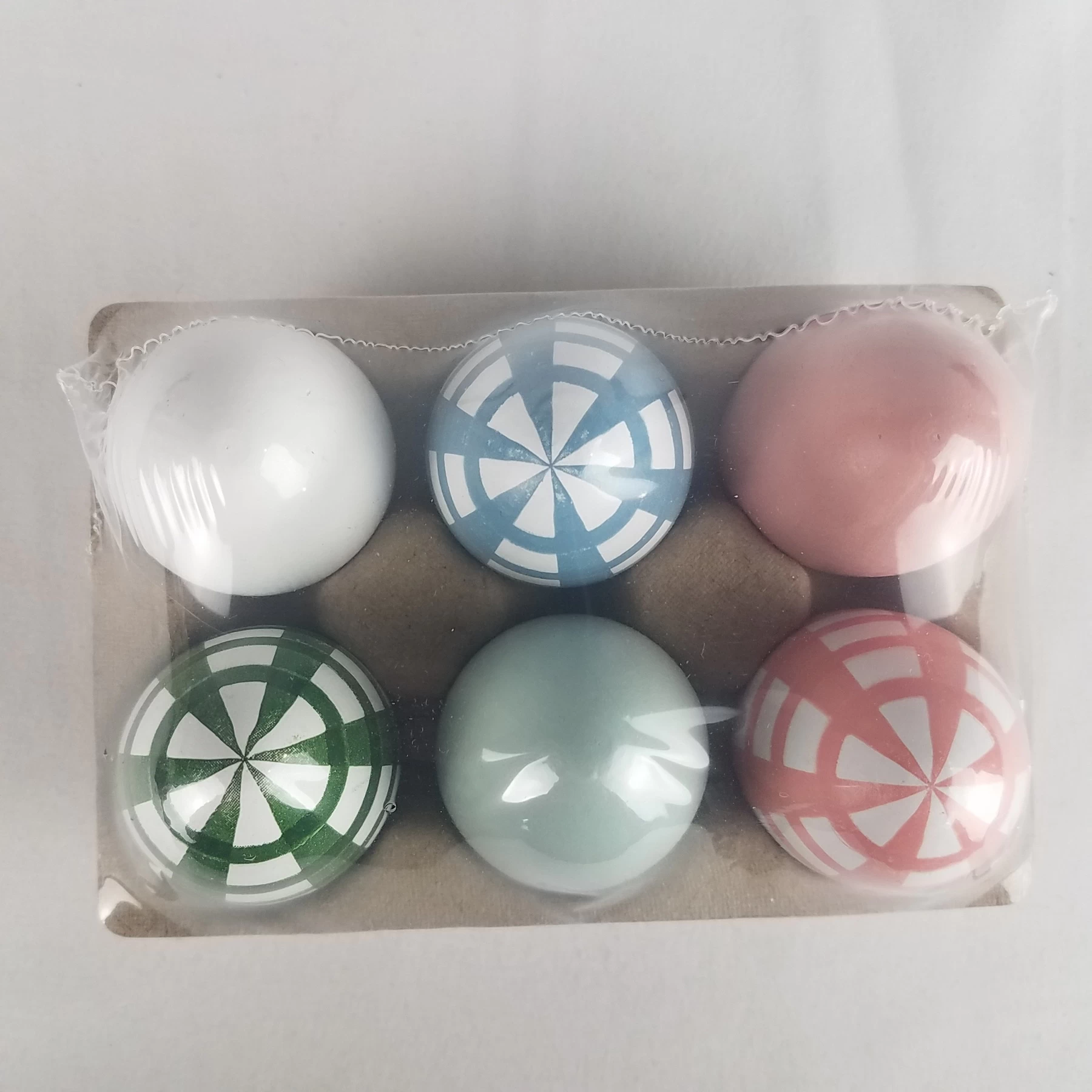 6 Multicolor wooden eggs in their own cardboard egg tray. Perfect for adding accents to your Easter decoration.