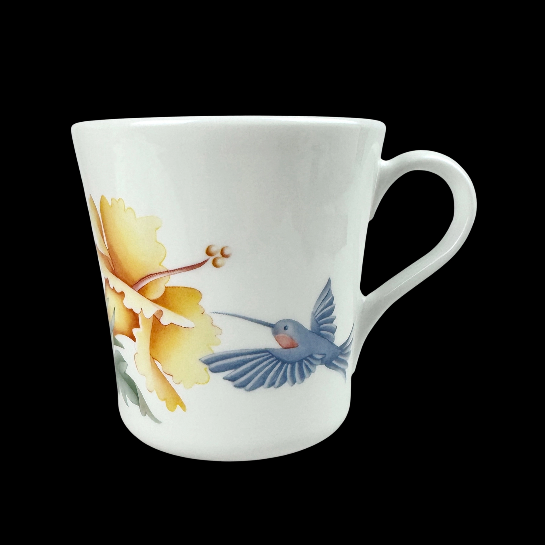 Corelle Hummingbird Flat Cup Mug Yellow Flower Blue Bird Corning USA