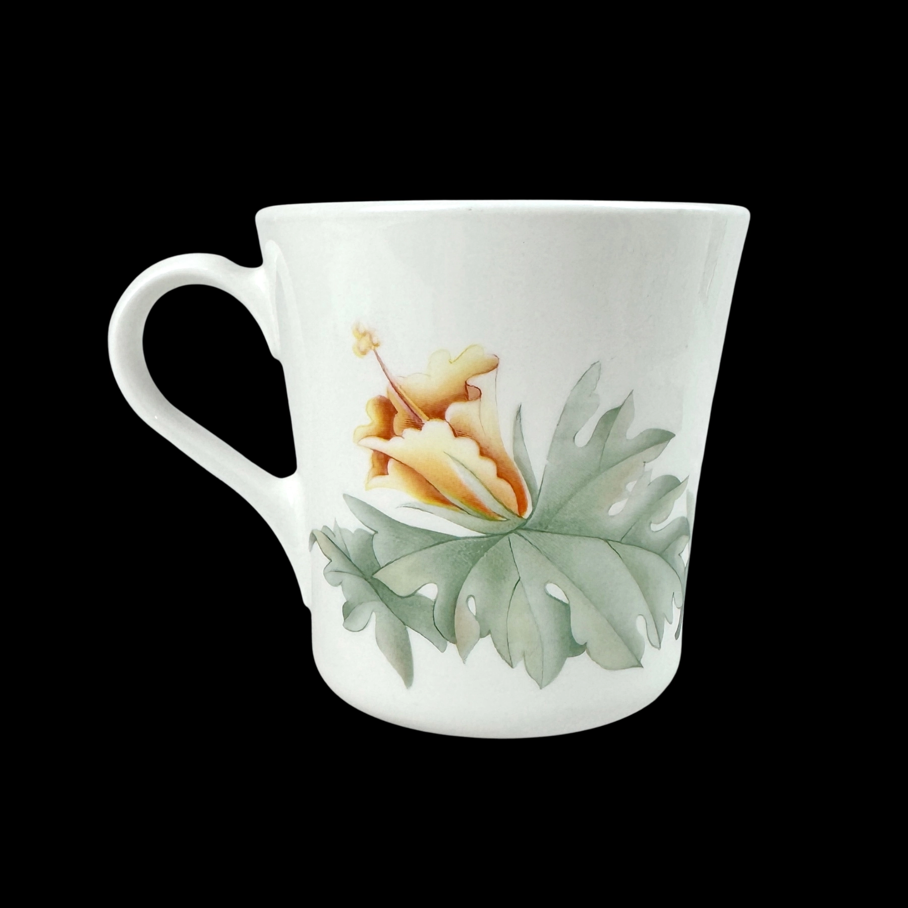 Elegant Corelle flat cup featuring the rare Hummingbird pattern with yellow hibiscus and blue bird design. Made of durable Vitrelle glass, it’s lightweight, chip resistant, microwave and dishwasher safe. Perfect for collectors or everyday use.
