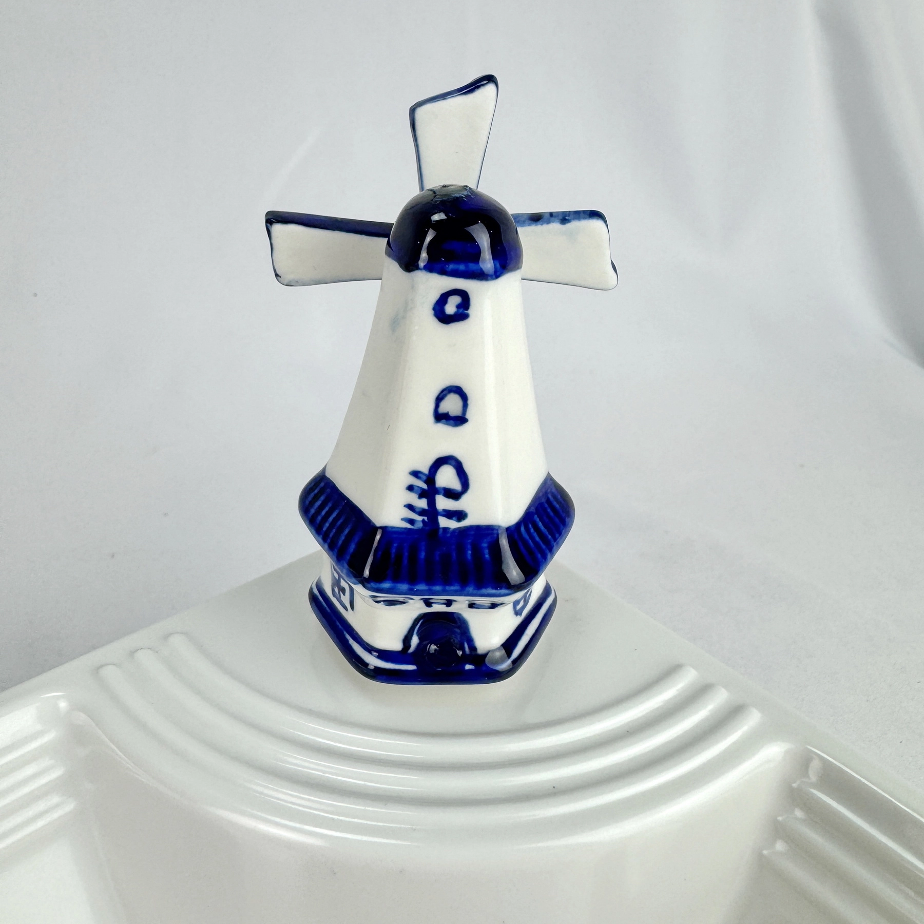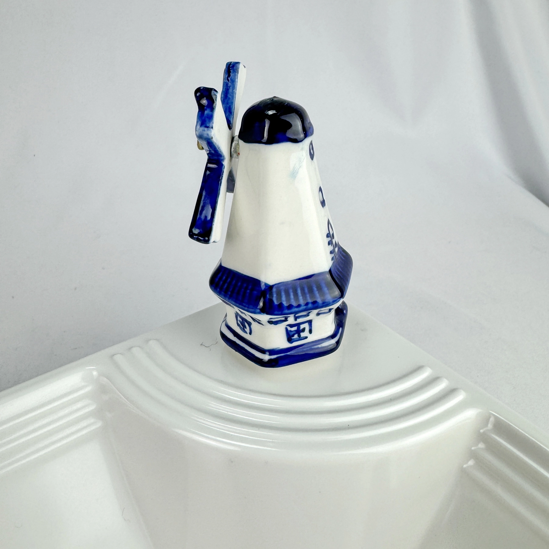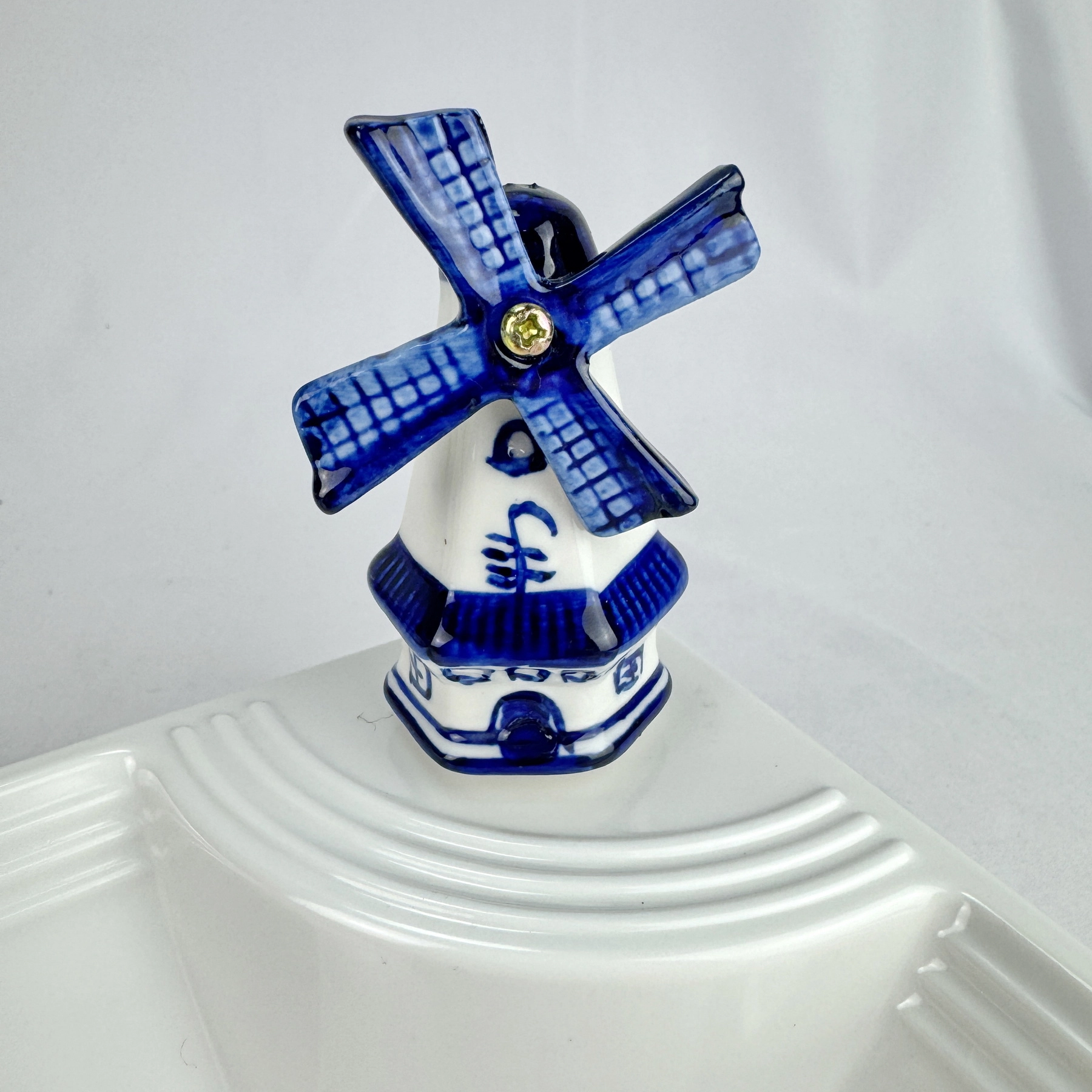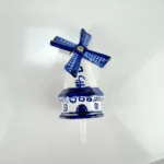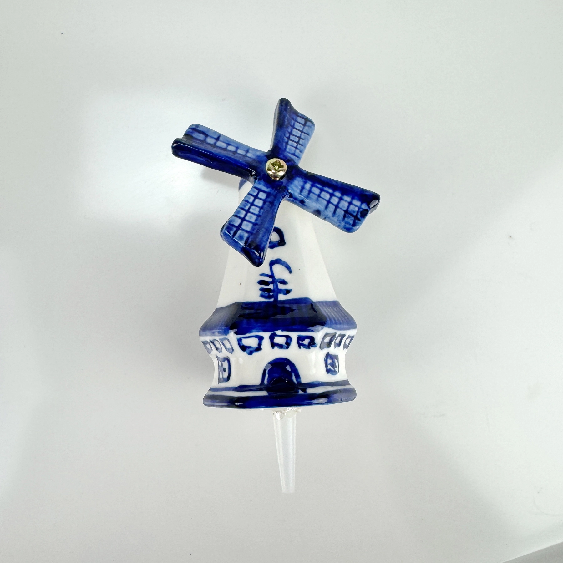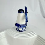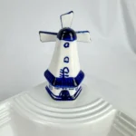 This mini porcelain windmill ornament, in delft blue style, has been refashioned to be used with Nora Fleming dishware or our own customized dishware and display pieces.