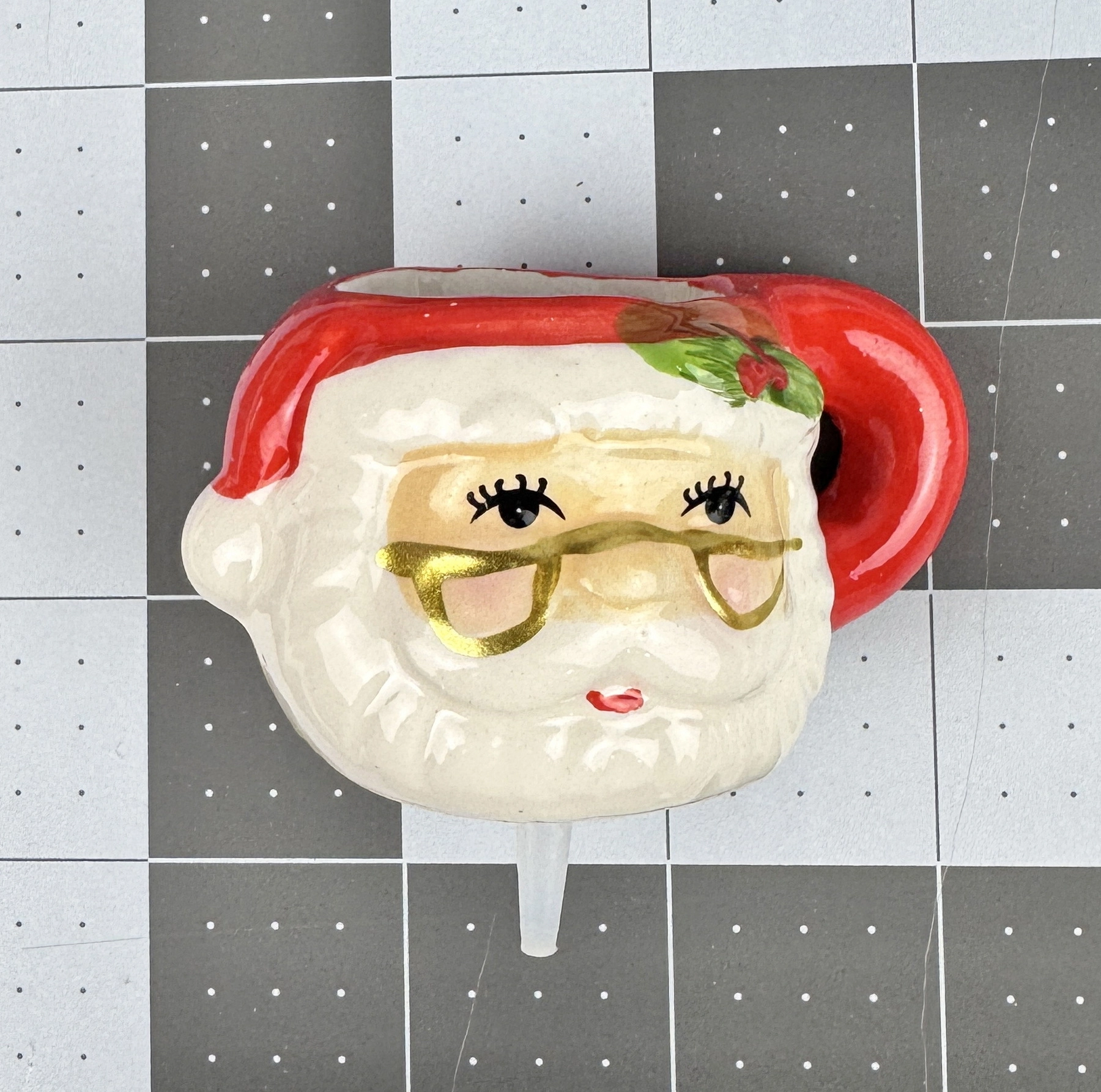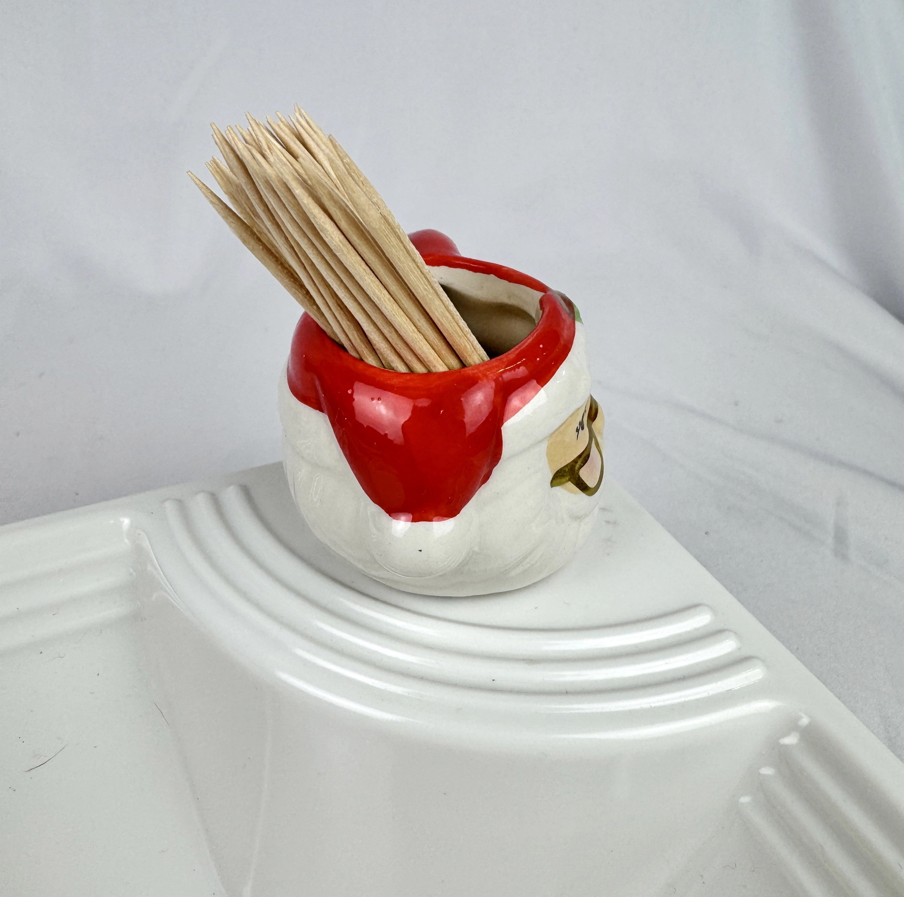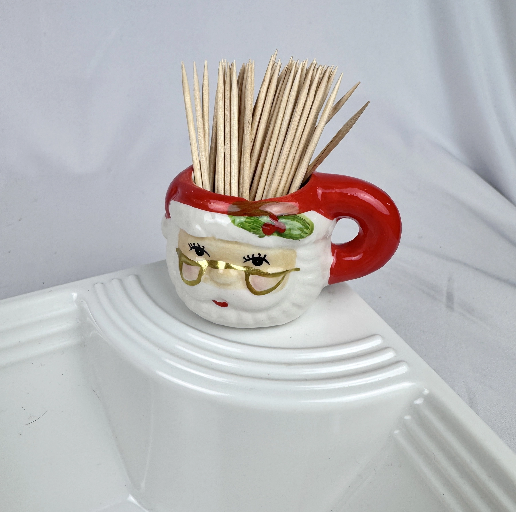 Dish Charm Faux Mini SANTA CLAUS Toothpick Holder Christmas Holiday Ceramic