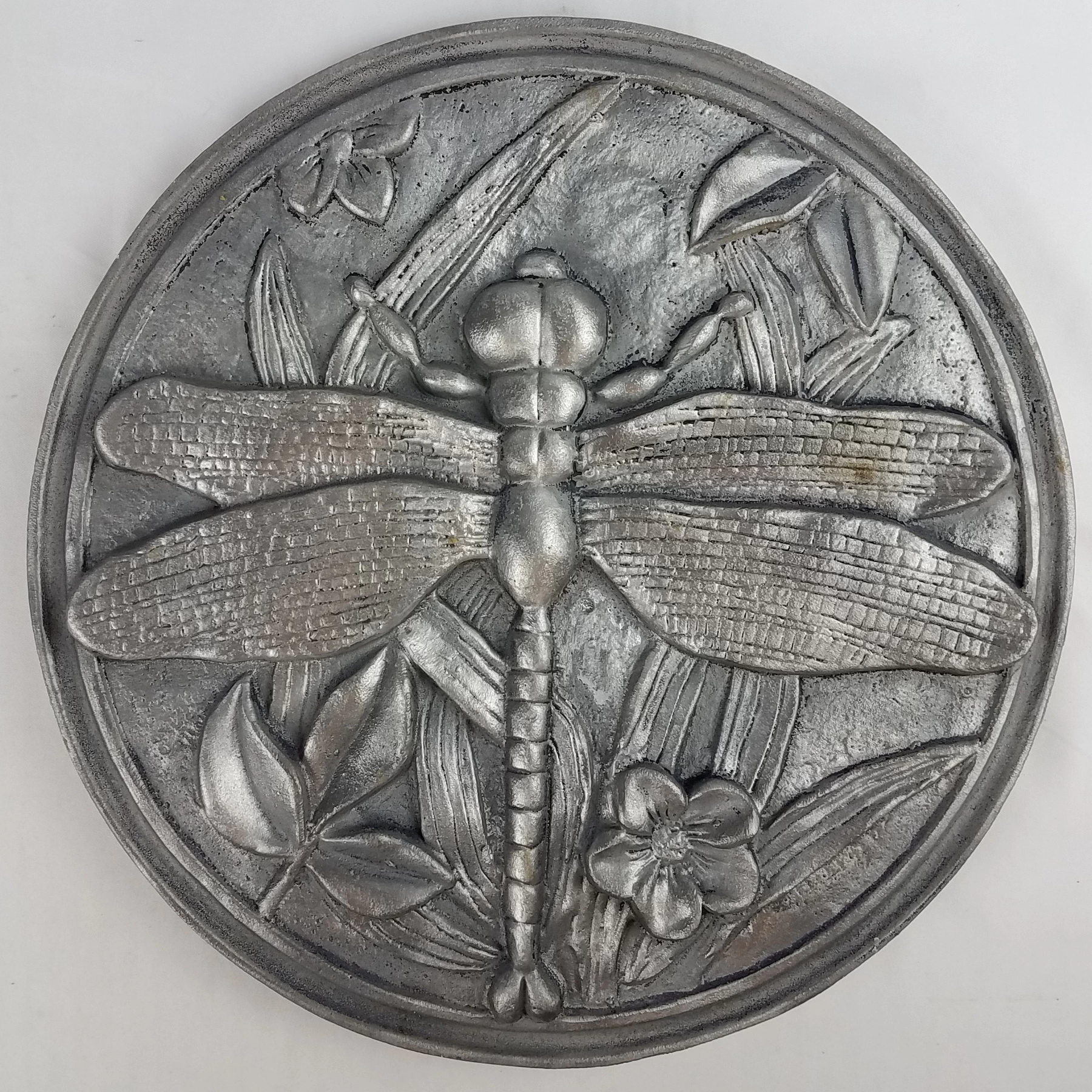 Dragonfly Embossed Aluminum Hanging Round Plaque Garden