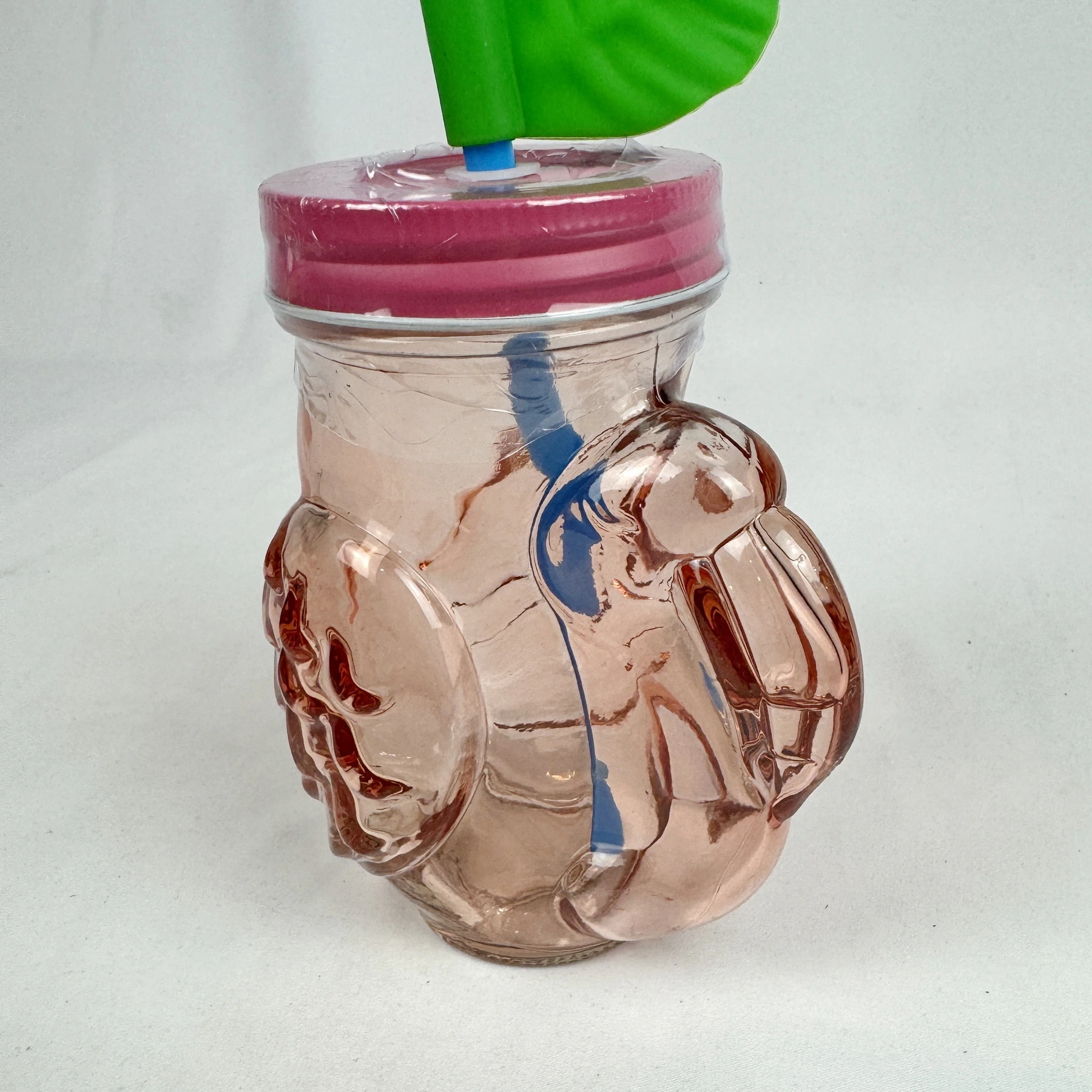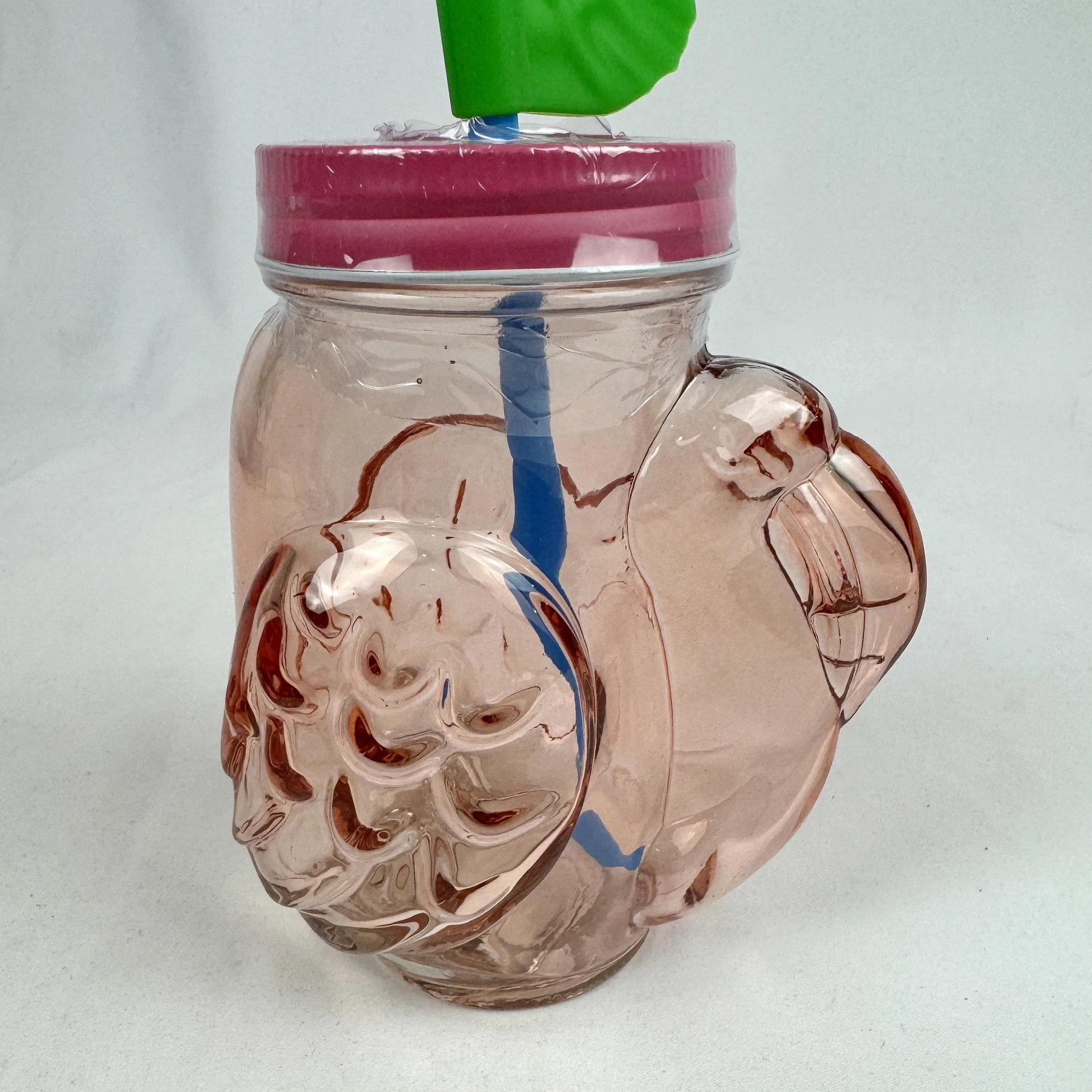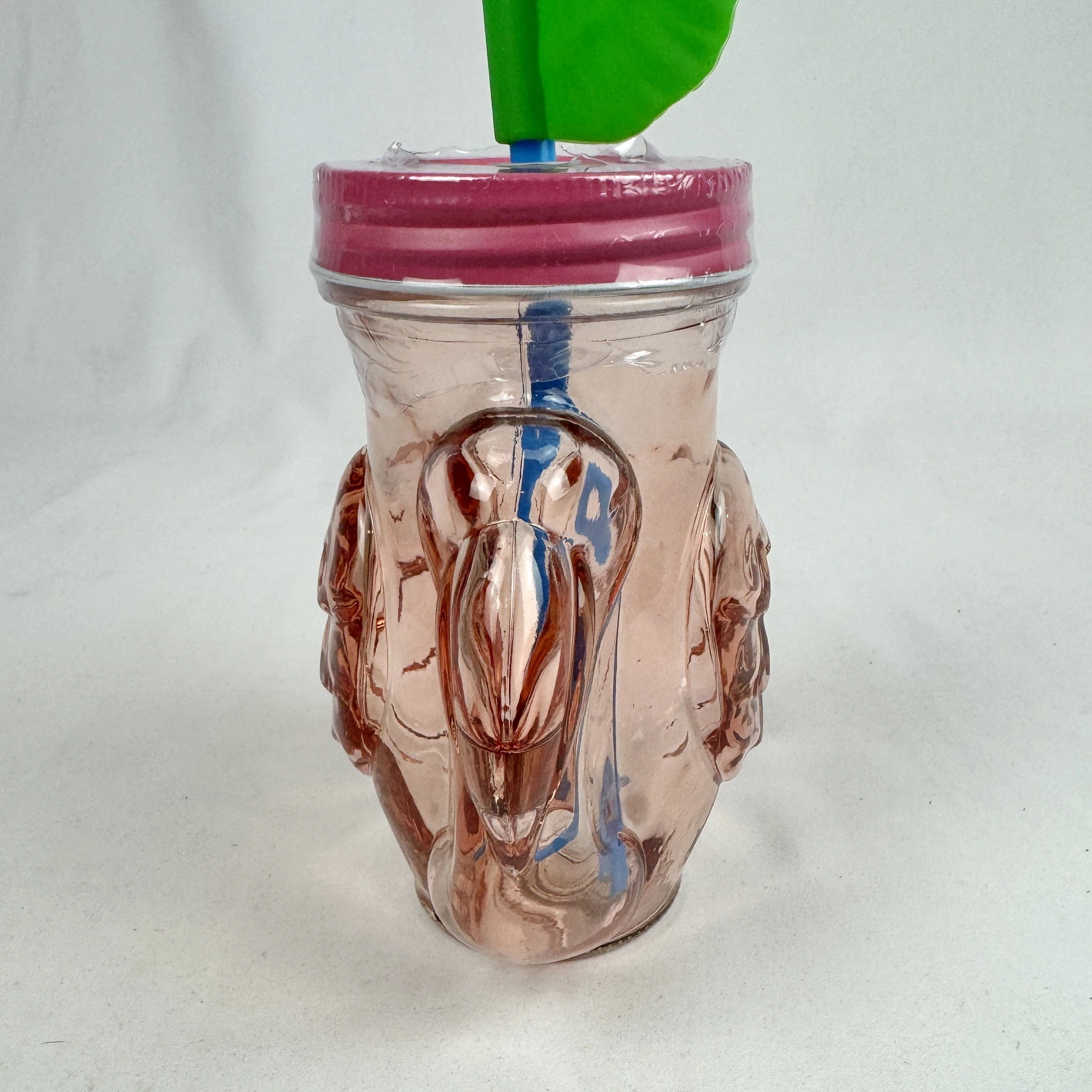 - Glass novelty glass drinkware with straw in shape of a Flamingo. Screw top