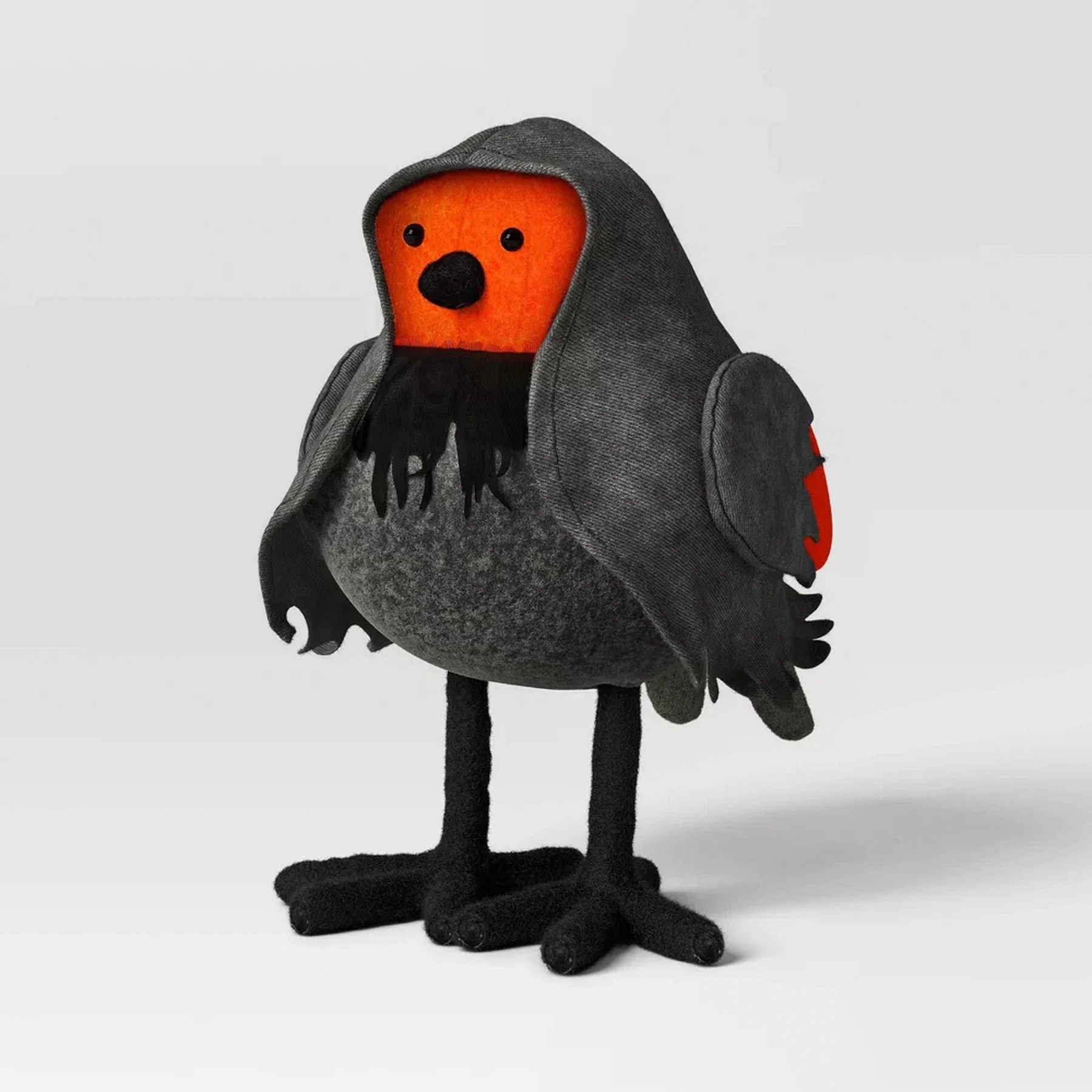 Infuse ghoulish vibes into your Halloween decor with this Lewis Halloween Bird Figurine. The fabric bird figurine is designed in dark gray with an orange face, a black beak, a back scarf and black feet for a creepy-cute look.