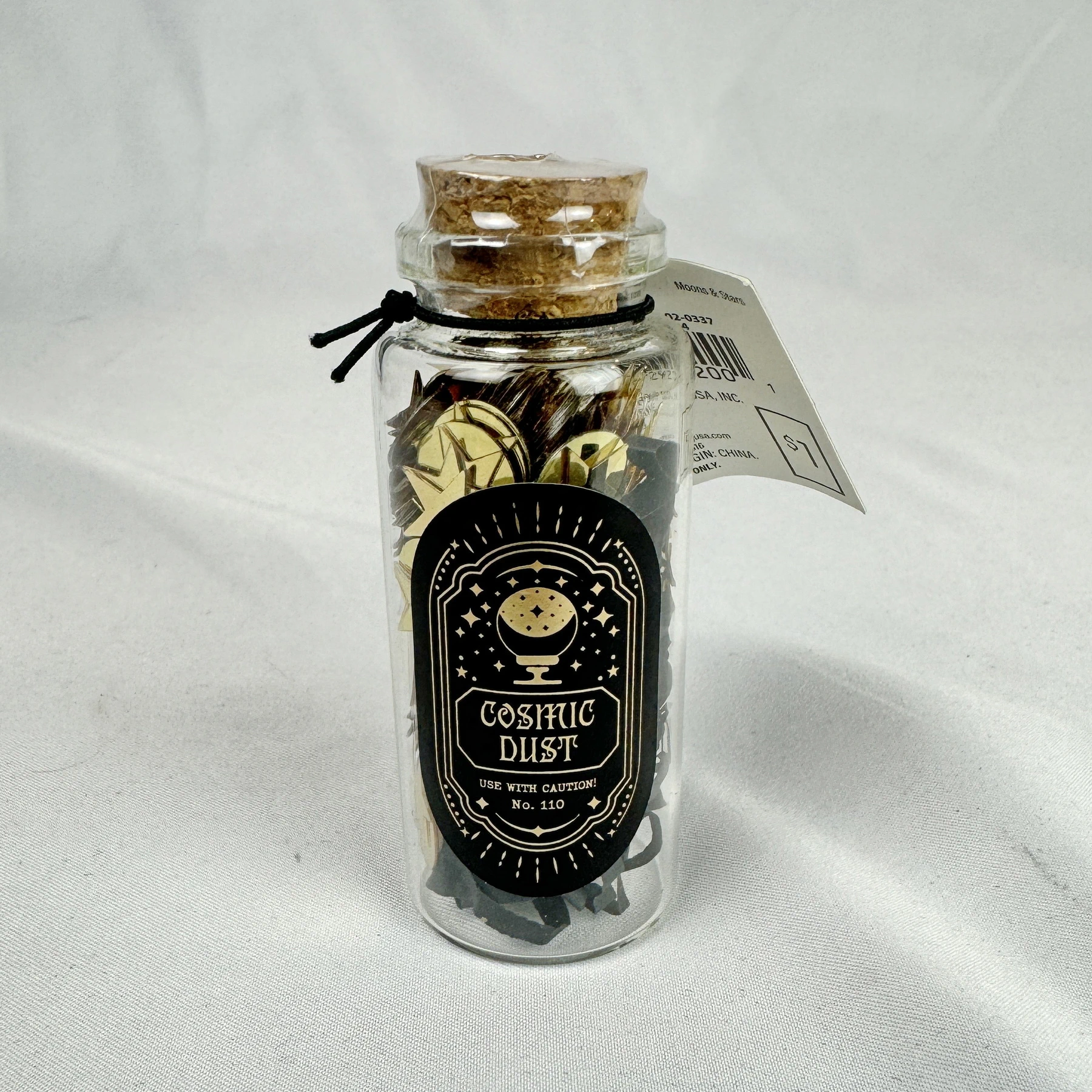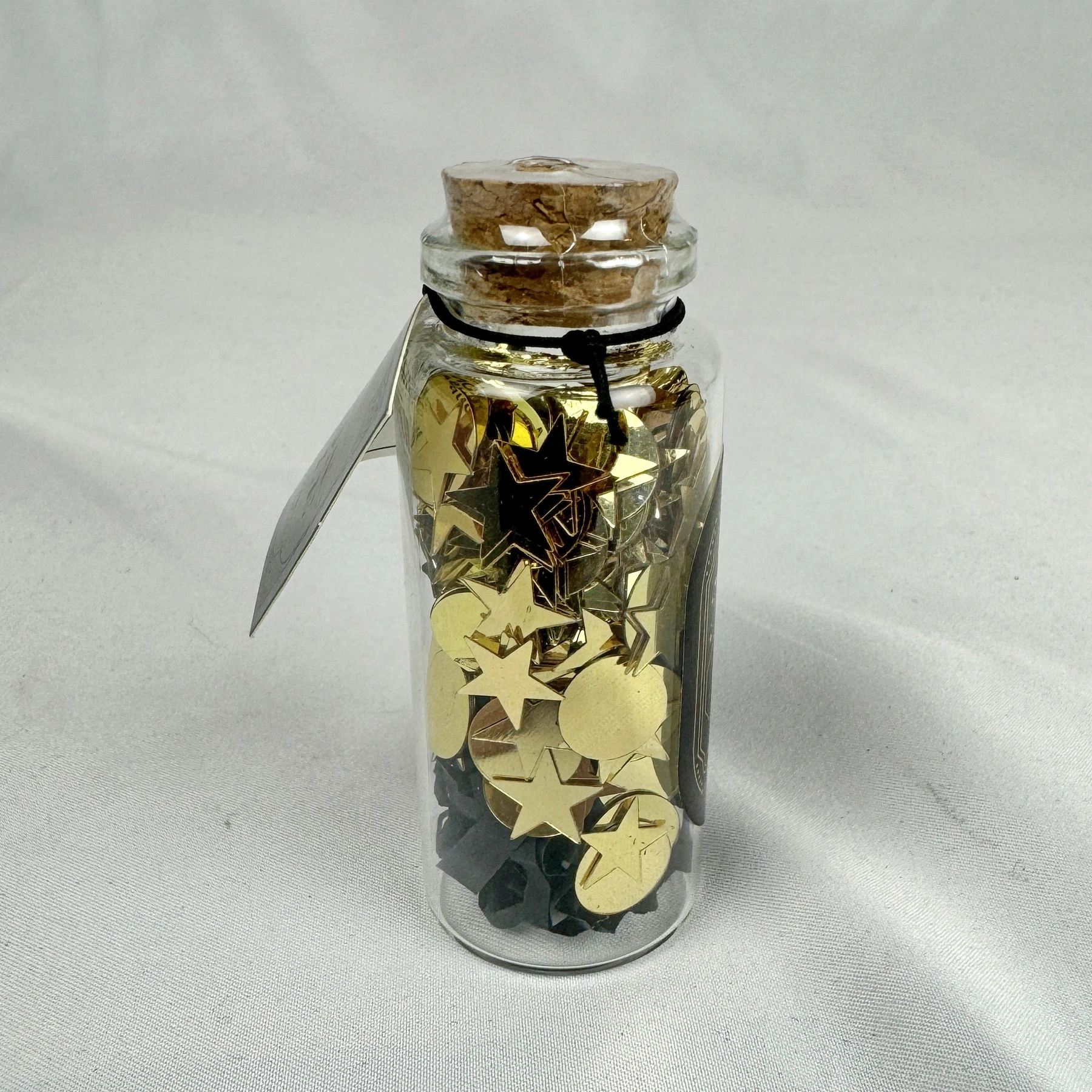 • 1 count glass bottle contents include black & gold confetti