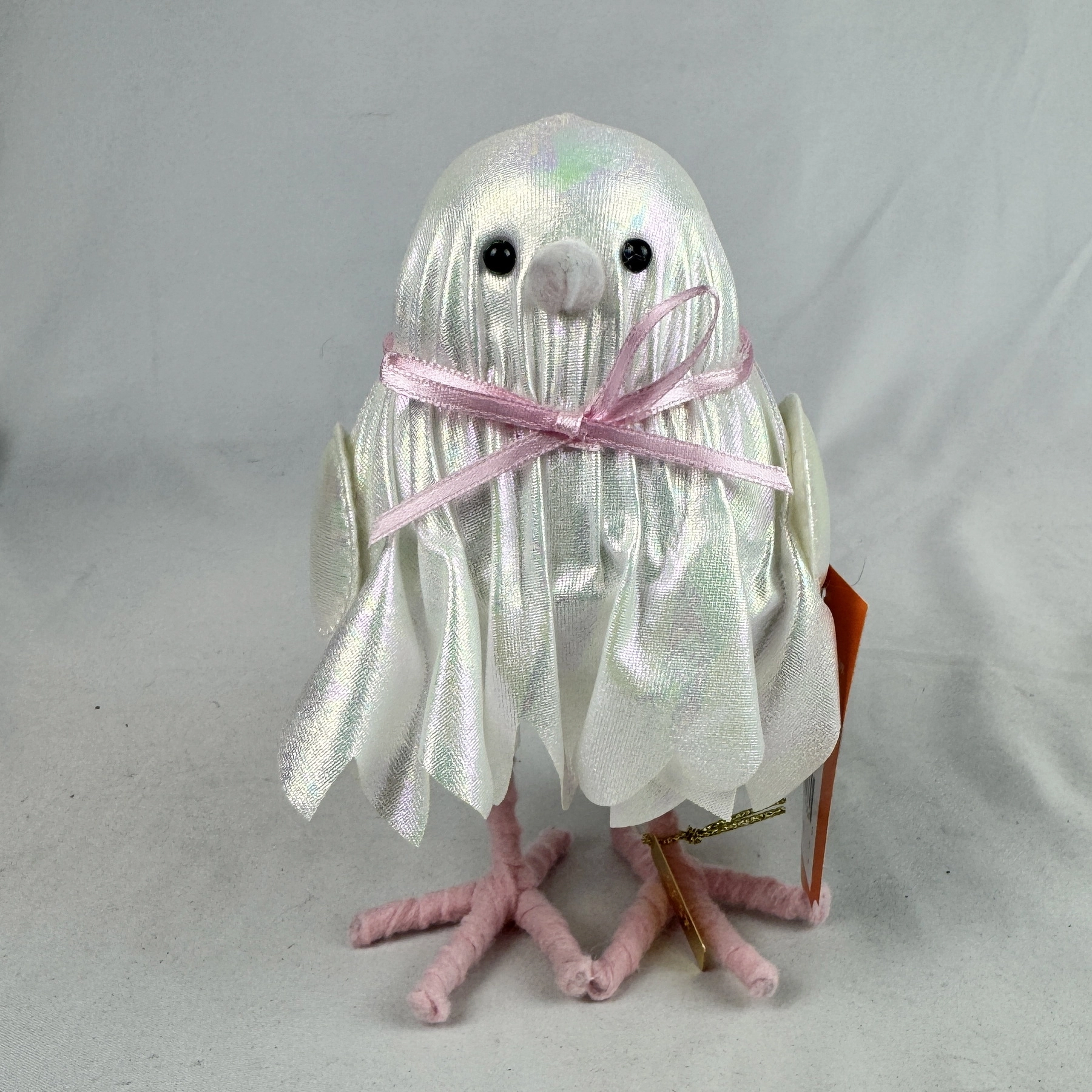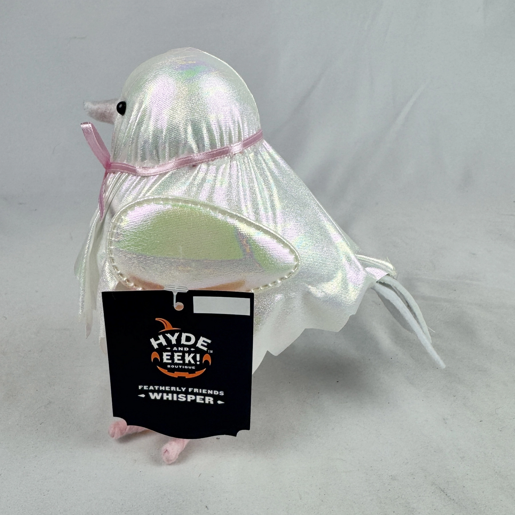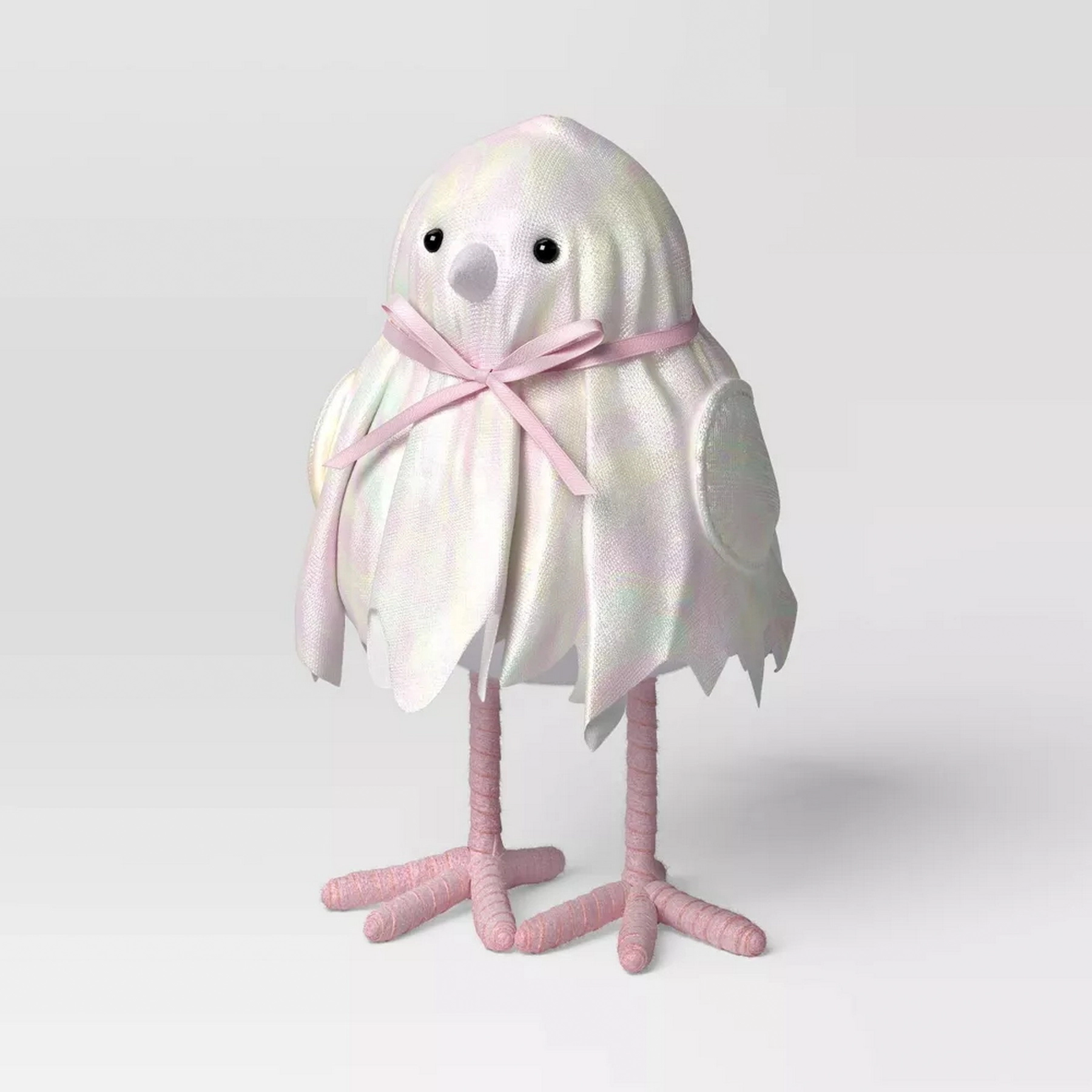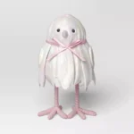 Crafted from styrofoam material, this Halloween figurine features a featherly ghost dressed in a shimmer jagged hem gown with bow-tie detailing to create a nighttime scene perfect for the haunting holiday.