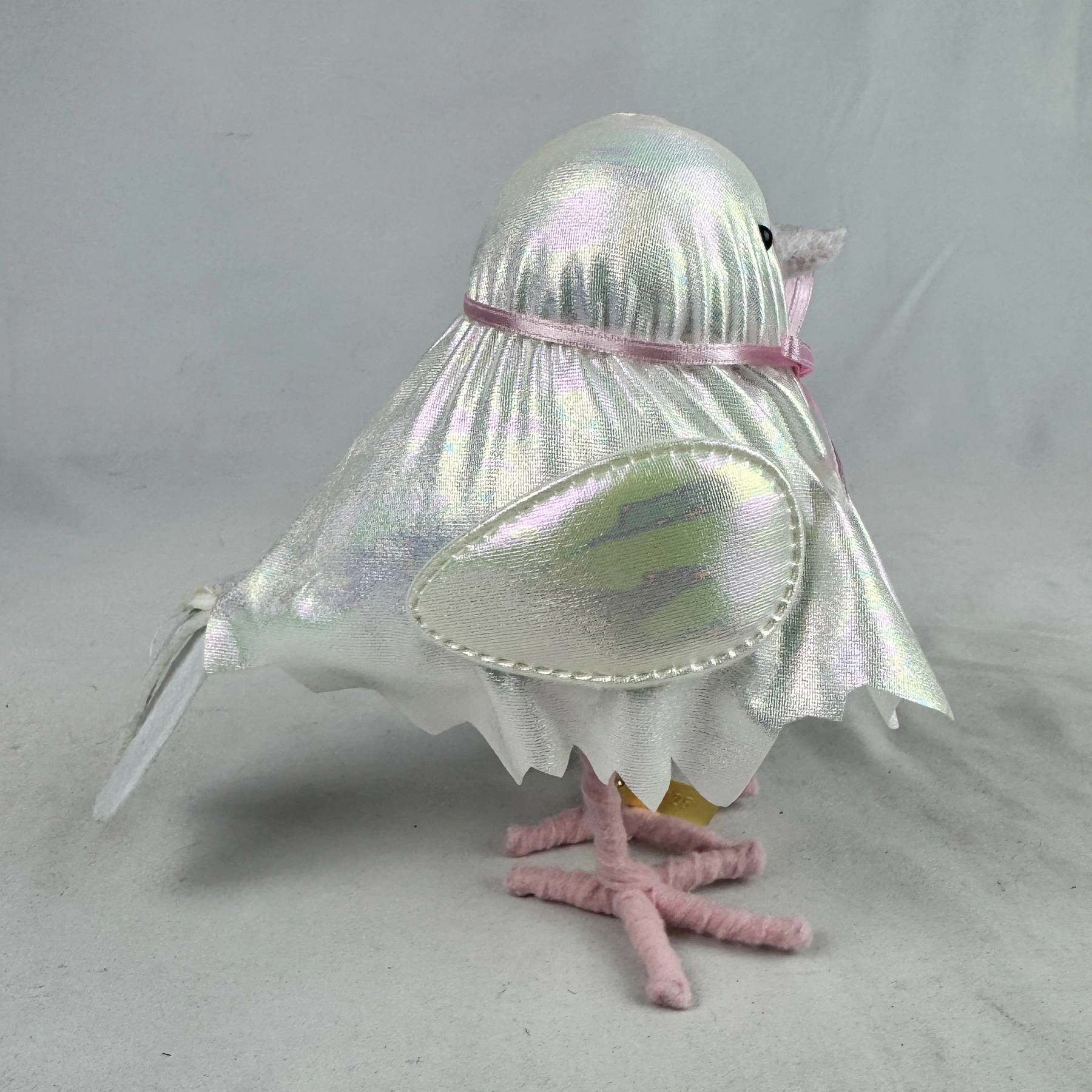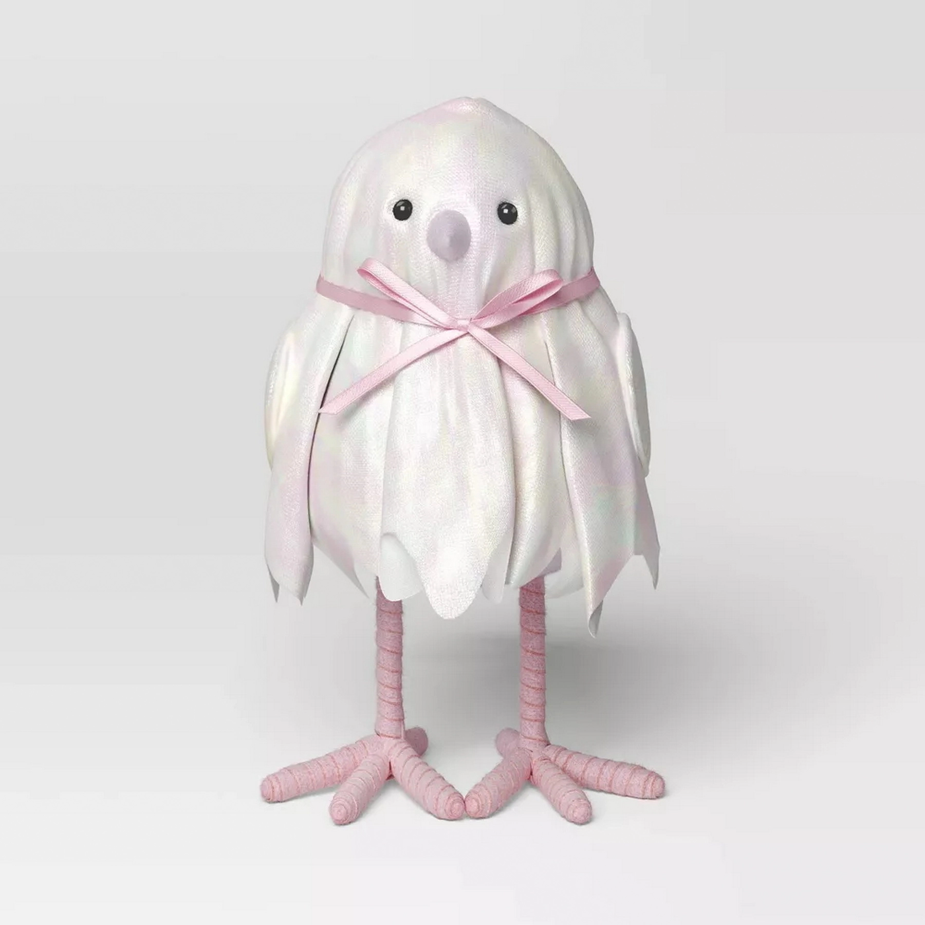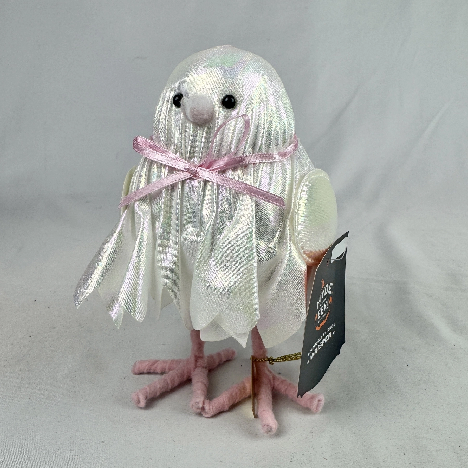 Crafted from styrofoam material, this Halloween figurine features a featherly ghost dressed in a shimmer jagged hem gown with bow-tie detailing to create a nighttime scene perfect for the haunting holiday.