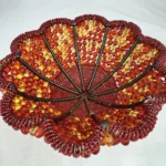 • Handmade, Scalloped Rim, Floral Spoke Pattern, BOHO, Folk Art, Red, Amber & Yellow Beads