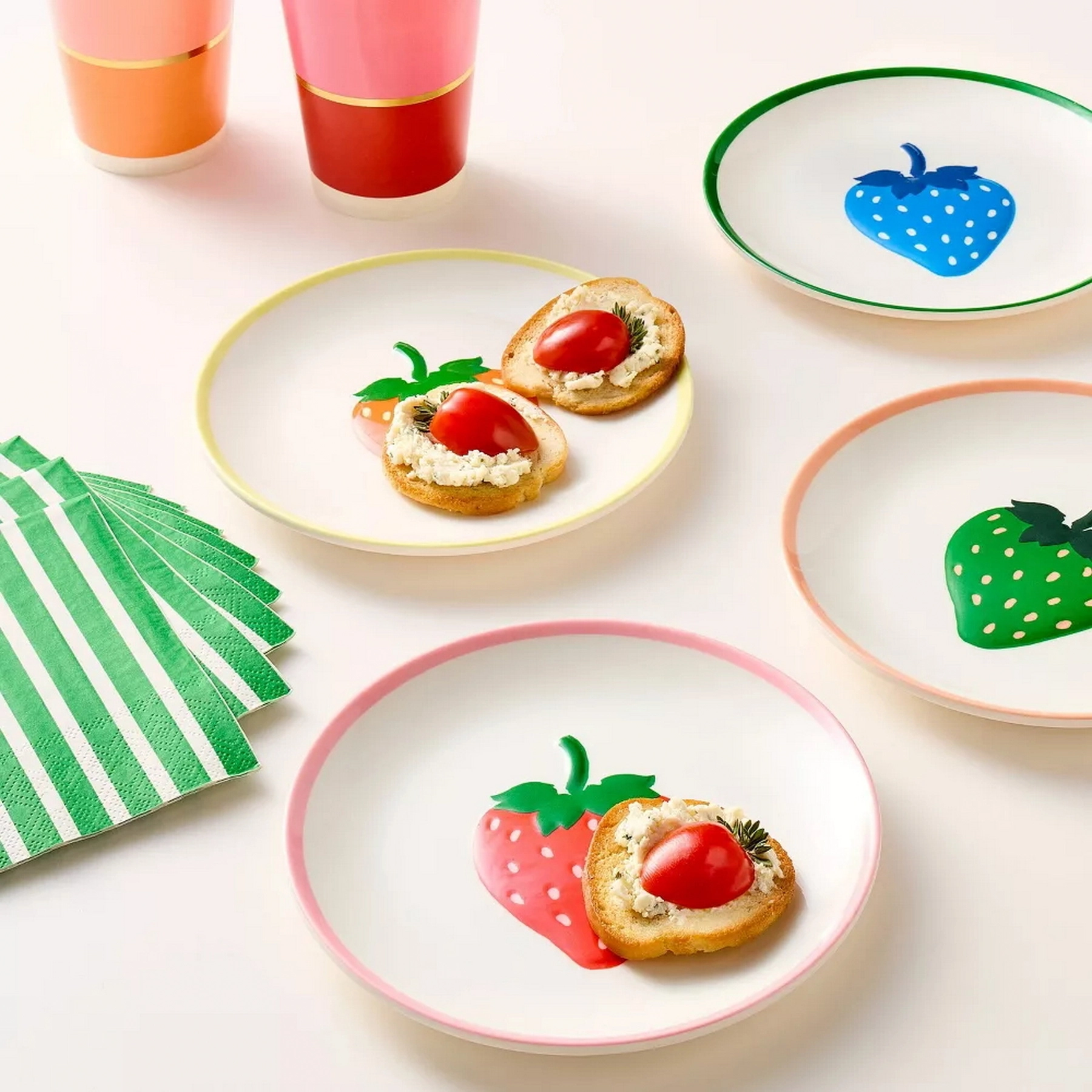 Delight your guests with the 4-Piece Melamine Plate Set from Kate Spade New York x Target. This set of four melamine plates features strawberry’s in multitude of colors.