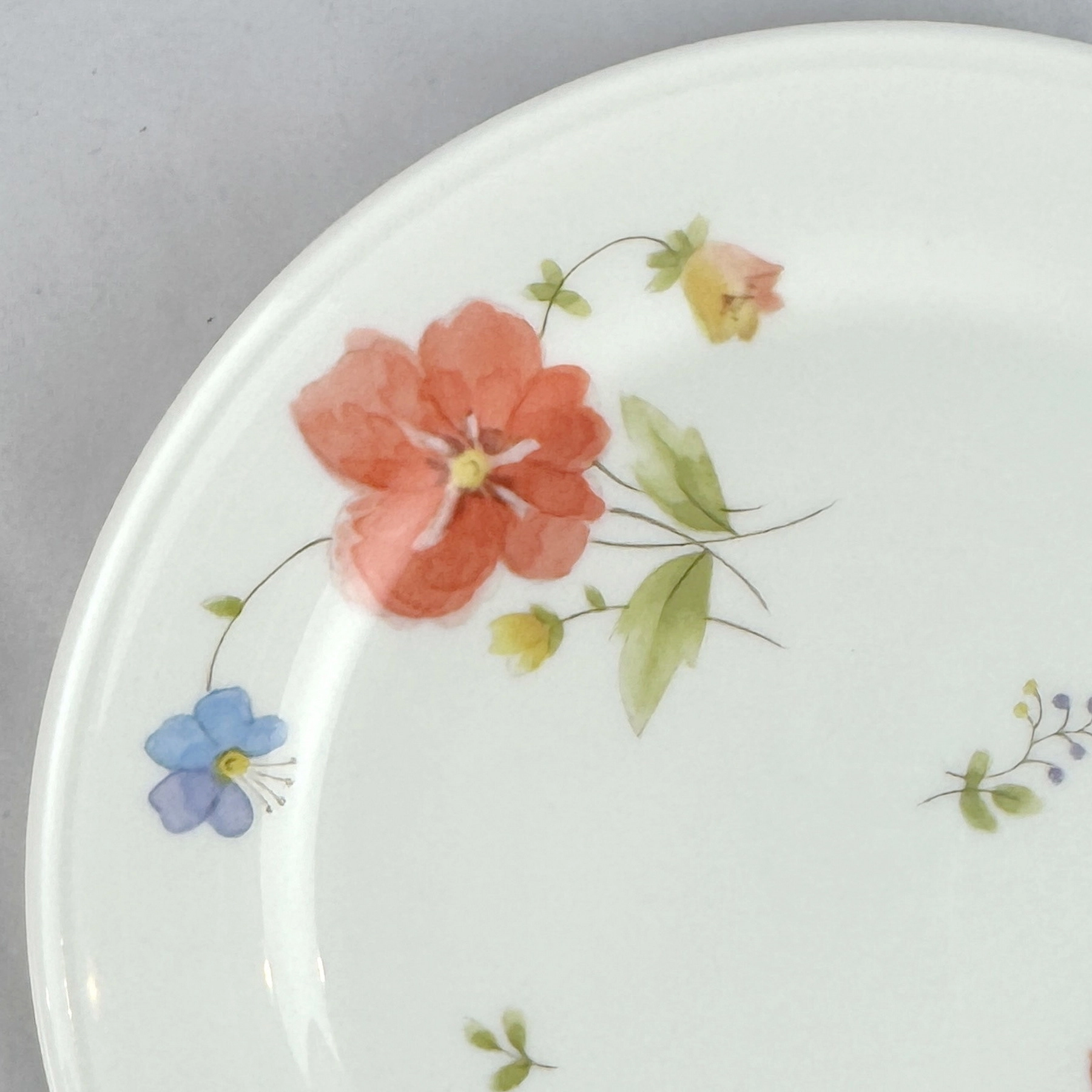 - All White, Bone, Coral, Yellow, Blue Flowers, Rim A4-182