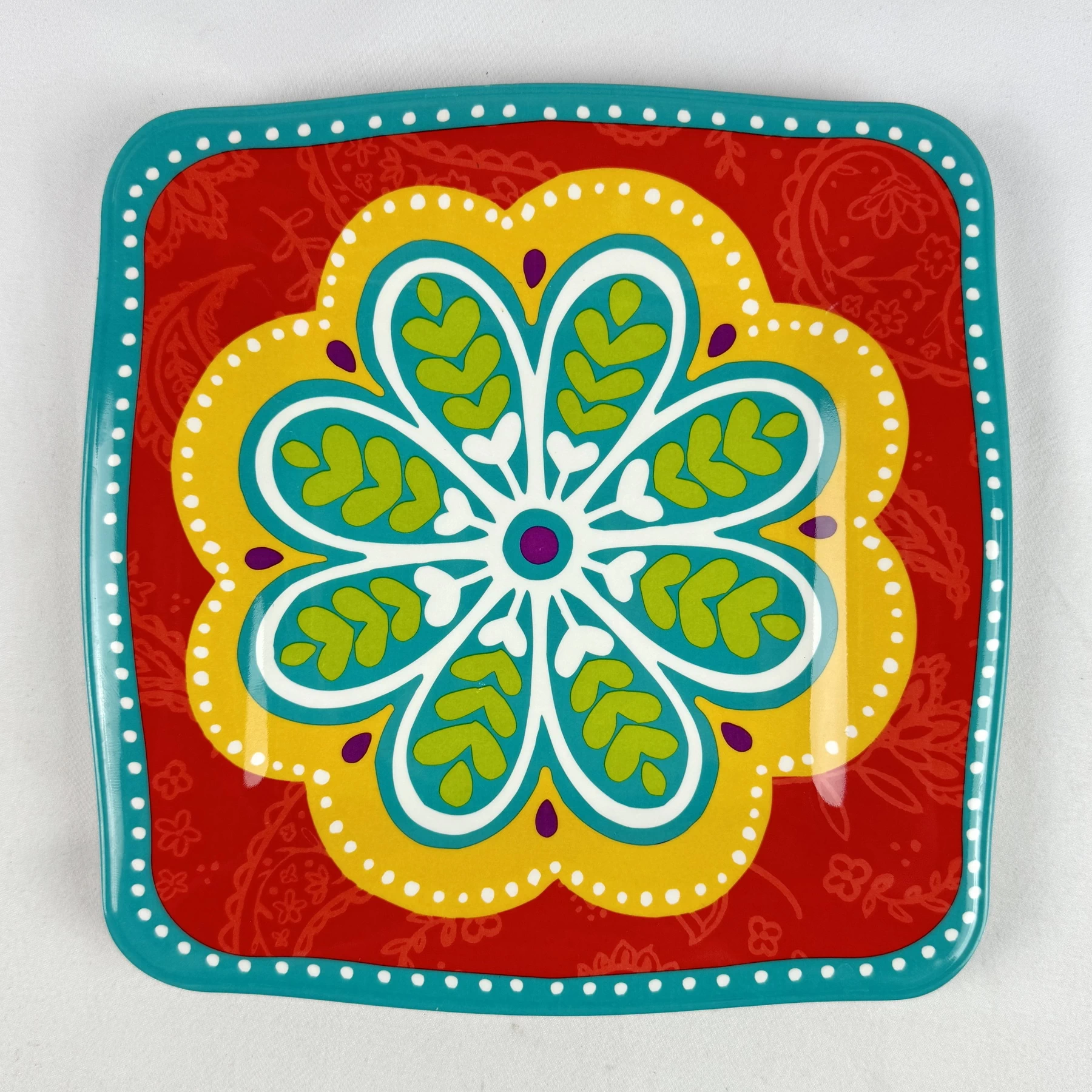 Pier 1 Imports Melamine Salad Plate SUNNY FLORAL Red