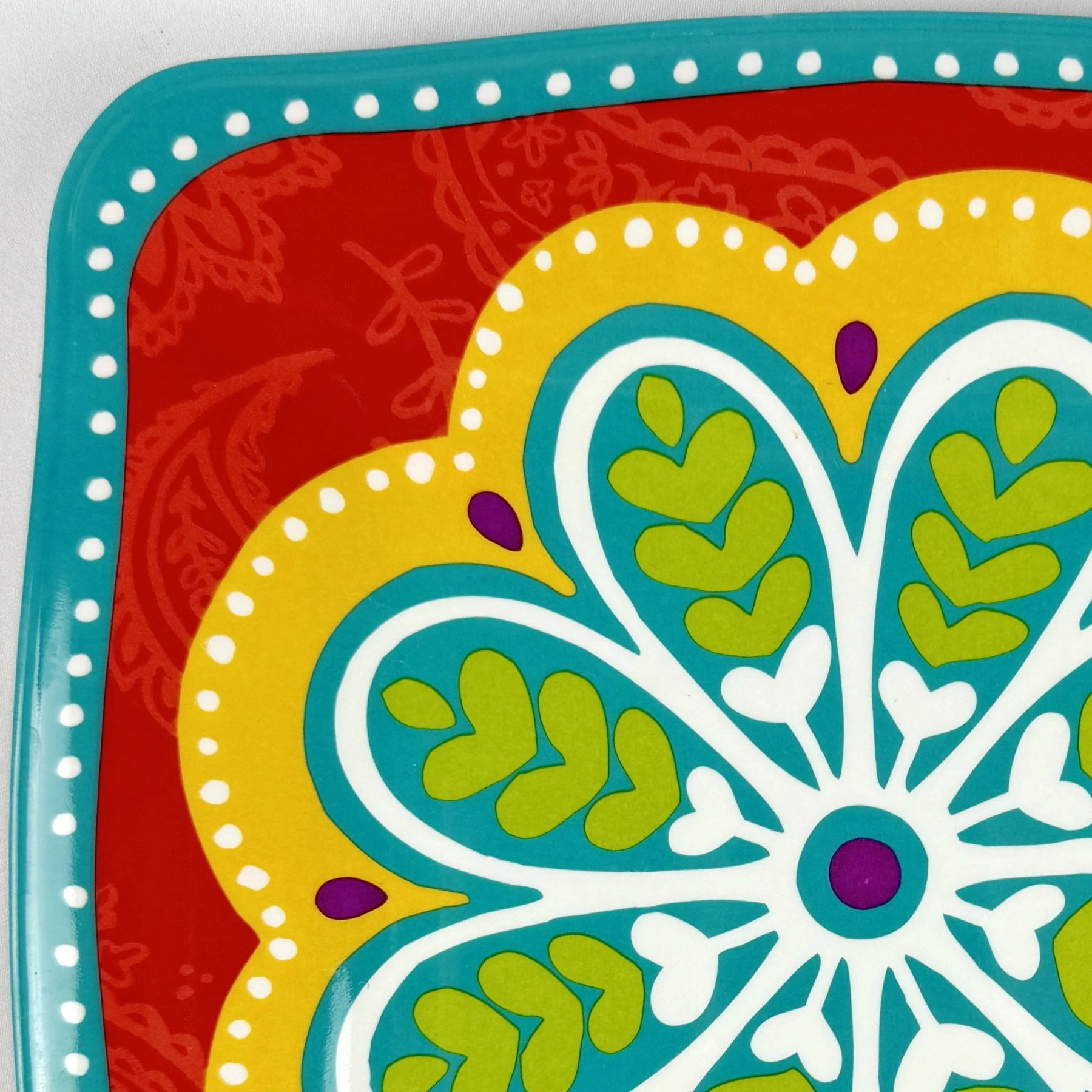 - Red with Multicolor Flower, Paisley Background, Blue Edge, Square