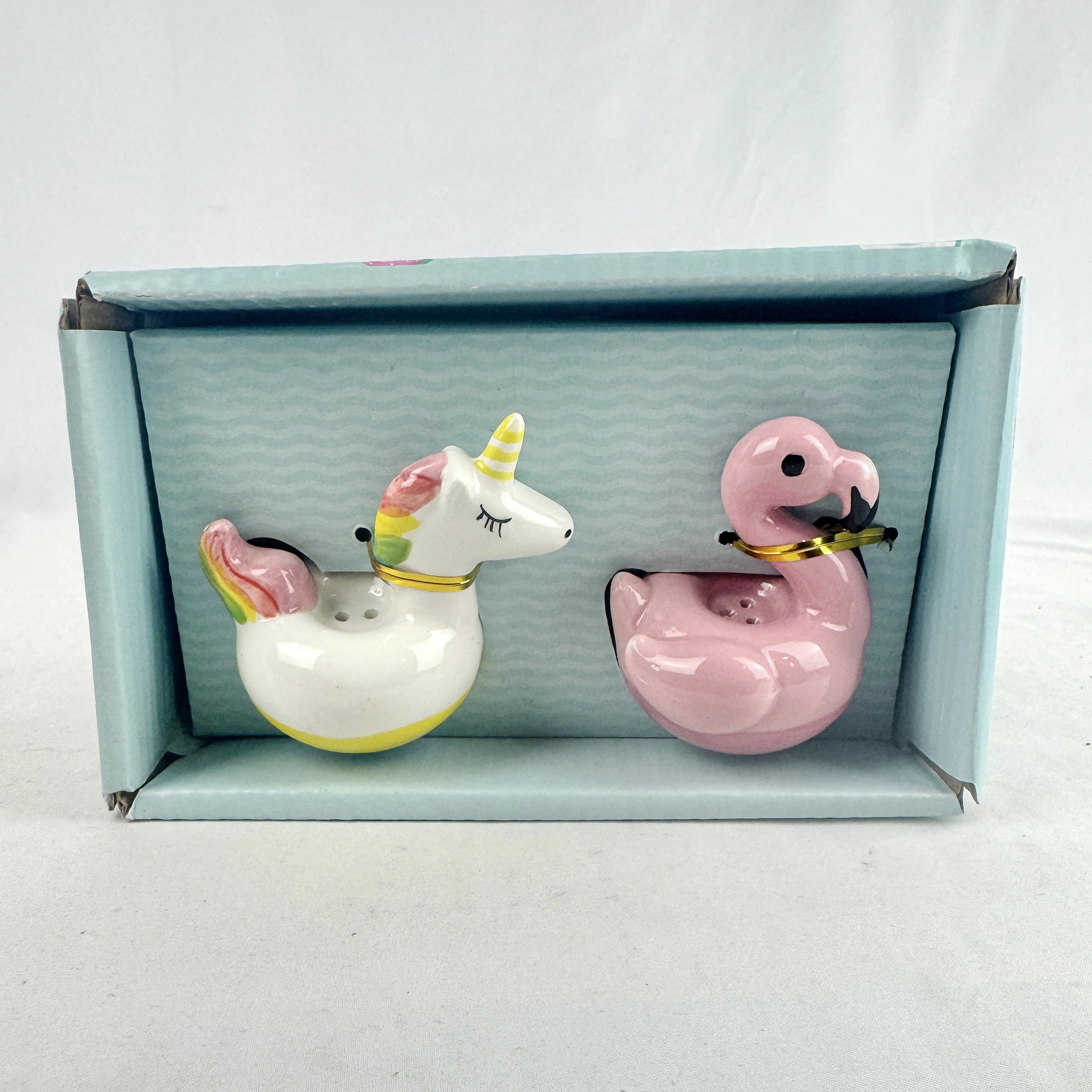 Pool Party Unicorn & Flamingo Salt & Pepper Shaker Set Ceramic 10 Strawberry St
