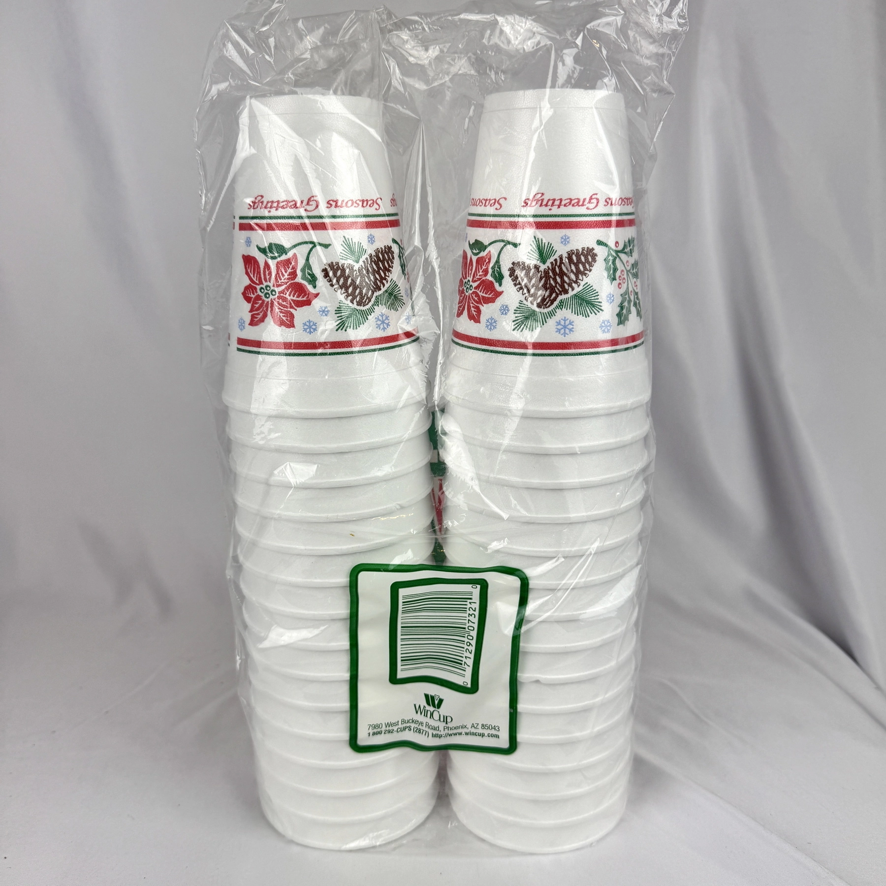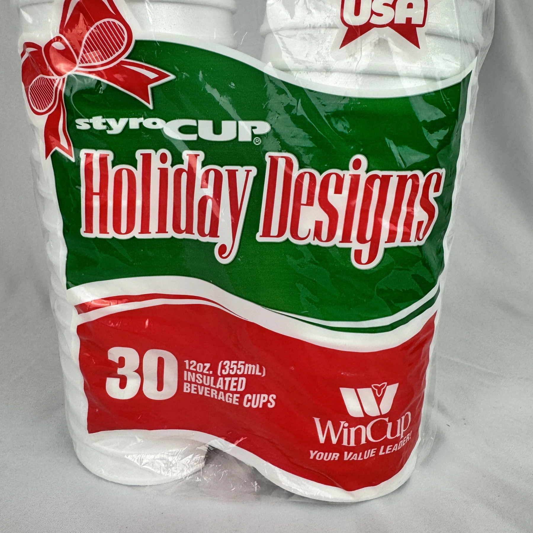 Retro WinCup Styro 12oz Disposable Cups Christmas Holiday 30 Pack