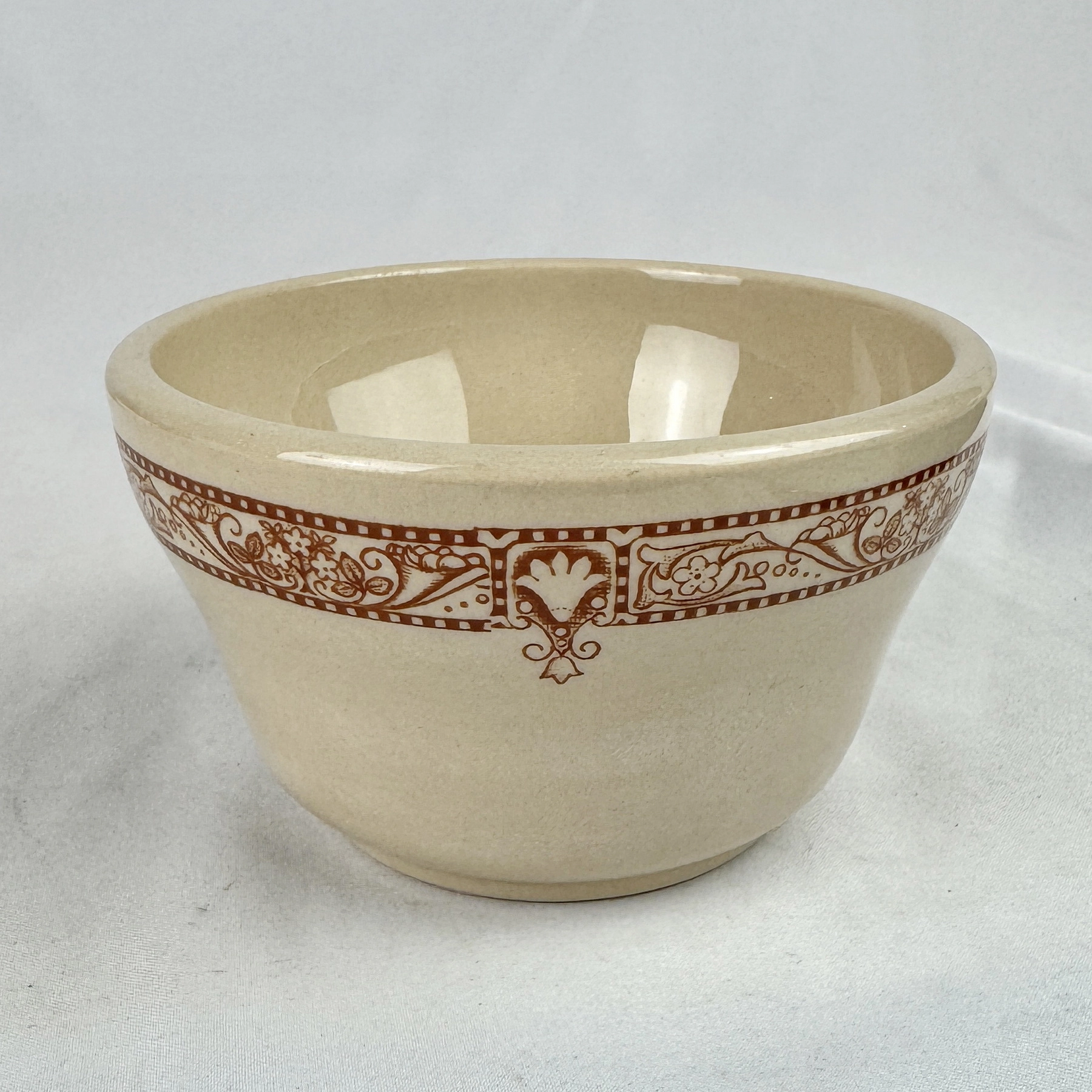 Vintage Shenango China bowl featuring brown floral border design, made in New Castle, Pennsylvania. Perfect collectible or everyday vintage serveware piece.