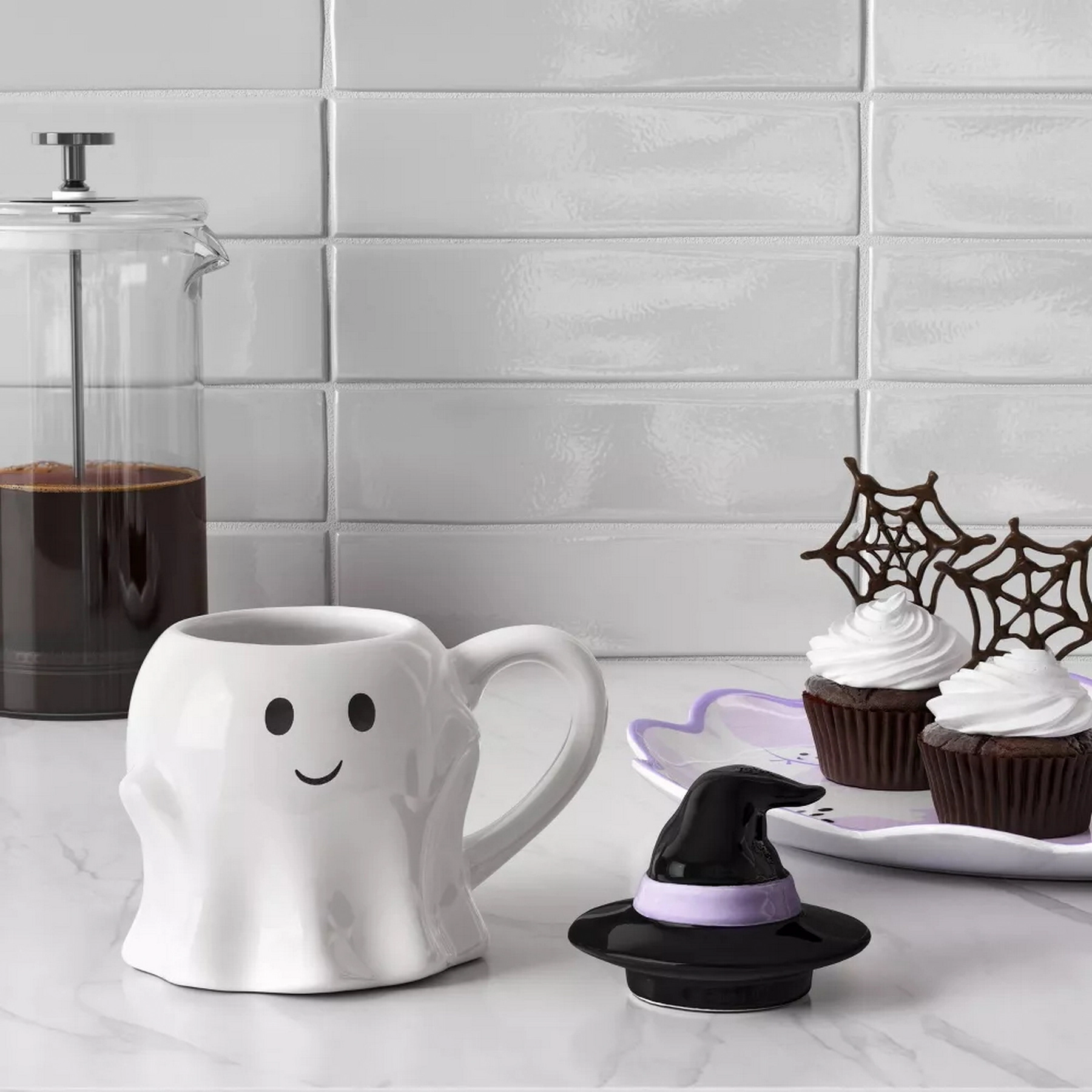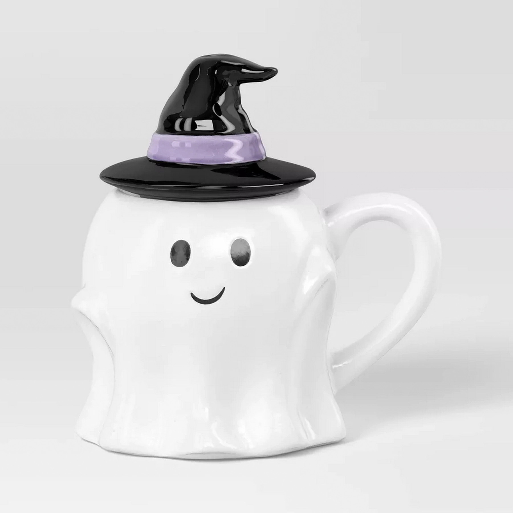 Give your mug collection a fun creepy-season update with the Ghost Mini Figural Mug with Lid from Hyde and EEK! Boutique. This white mug is designed in the shape of a ghost wearing a black witch hat. Made of stoneware, this figural mug is great for serving both hot and cold beverages, and it’s microwave and dishwasher safe for easy reheating and cleaning.