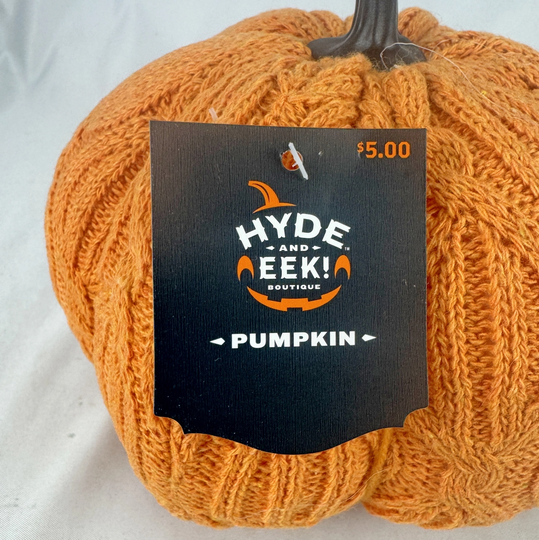 Cozy Target Hyde & Eek! Boutique orange cable knit pumpkin, approximately 6” tall. Features a textured knit design with molded stem—perfect for fall, Halloween, or Thanksgiving decor. New with tag.