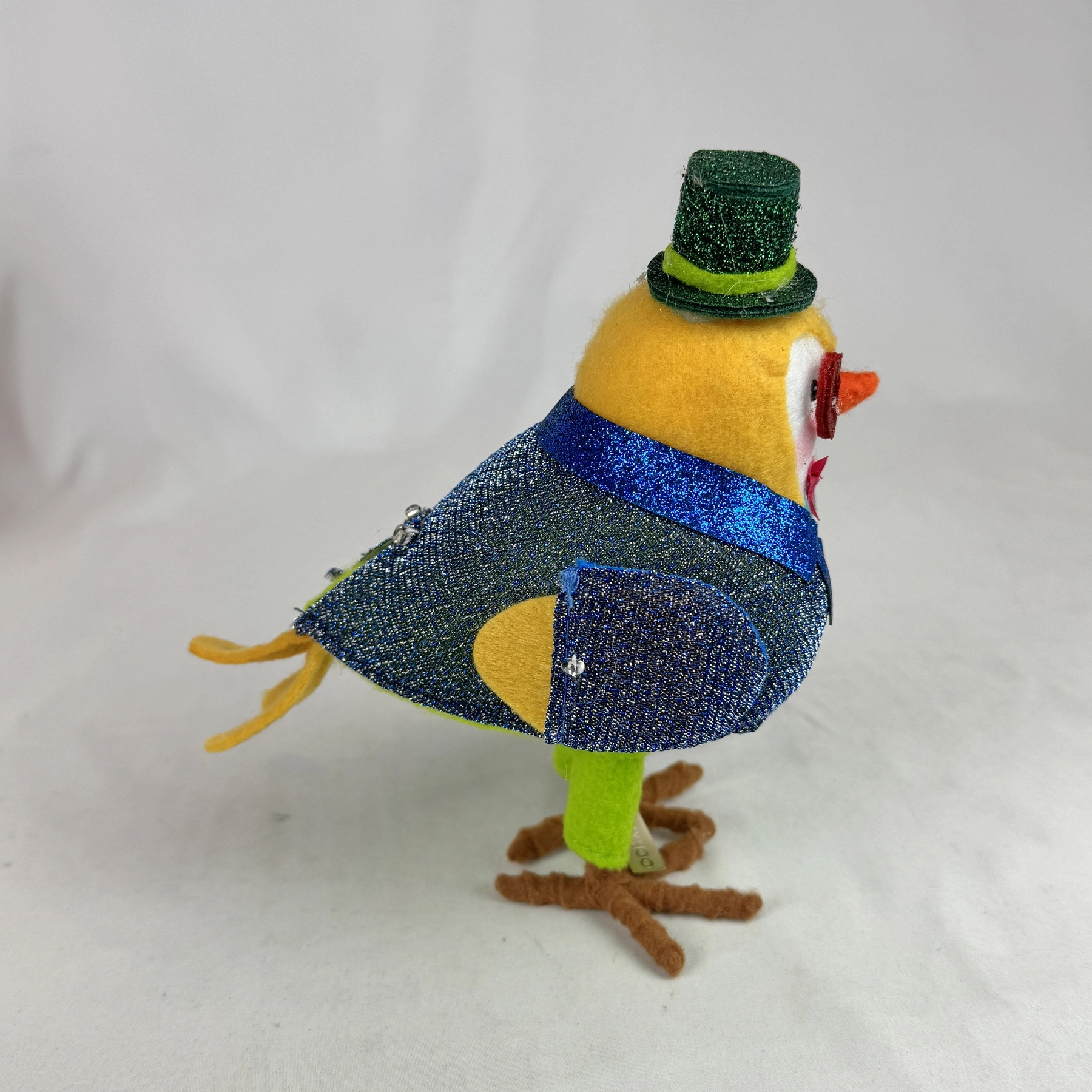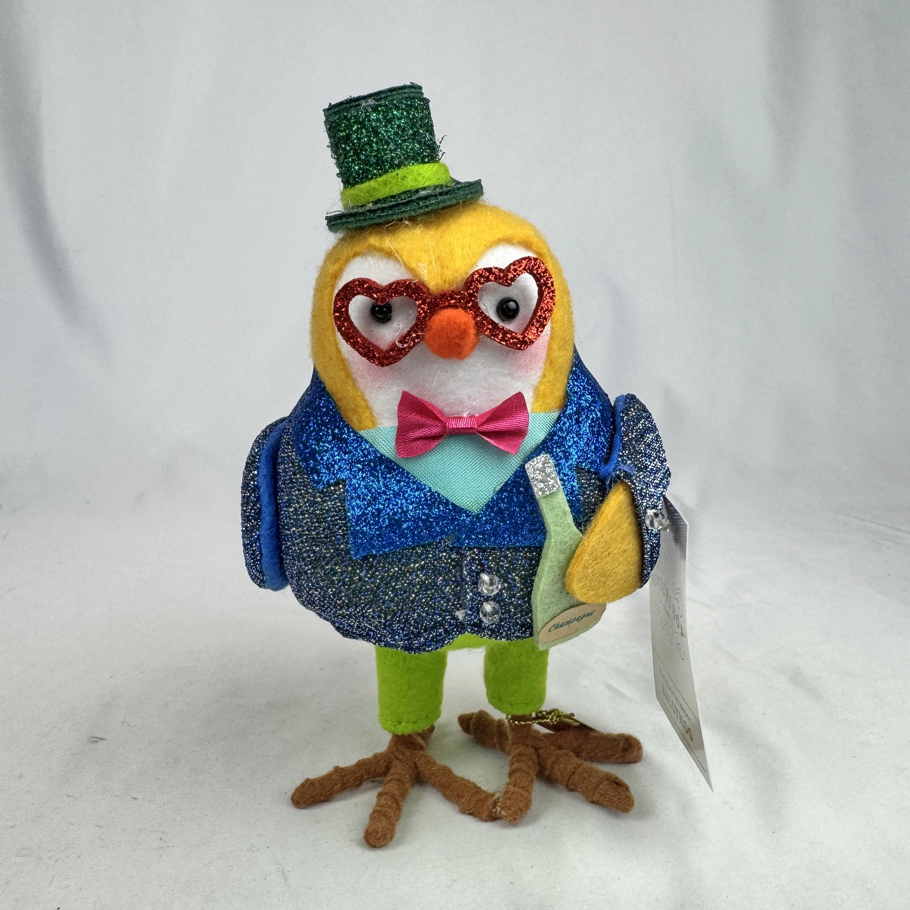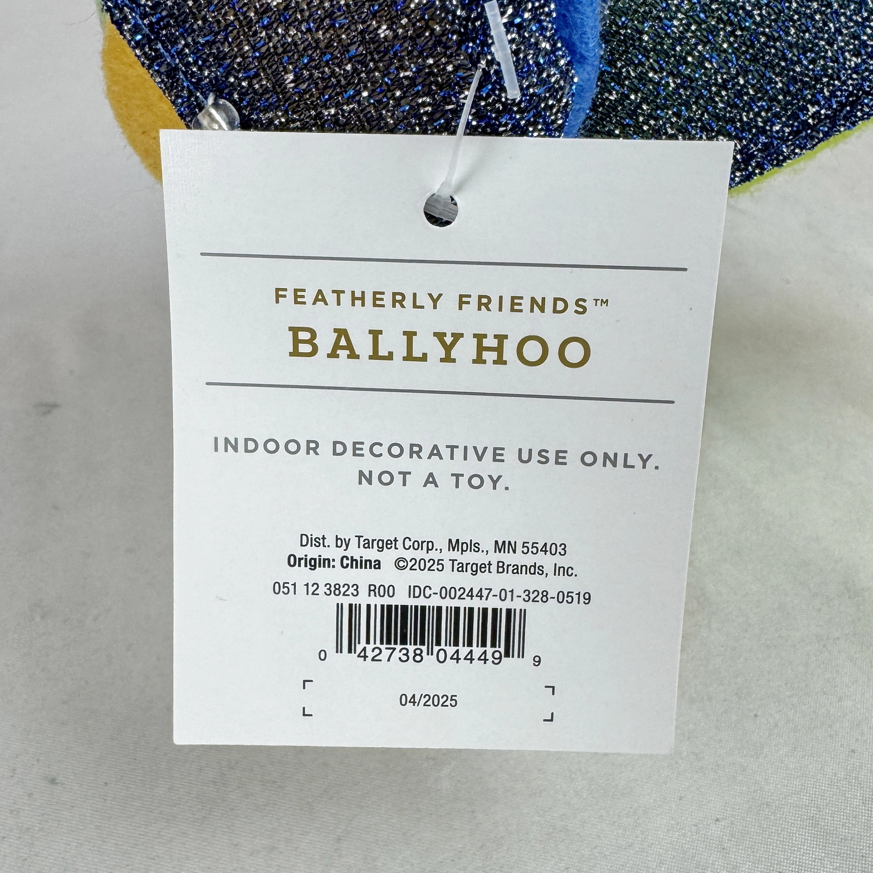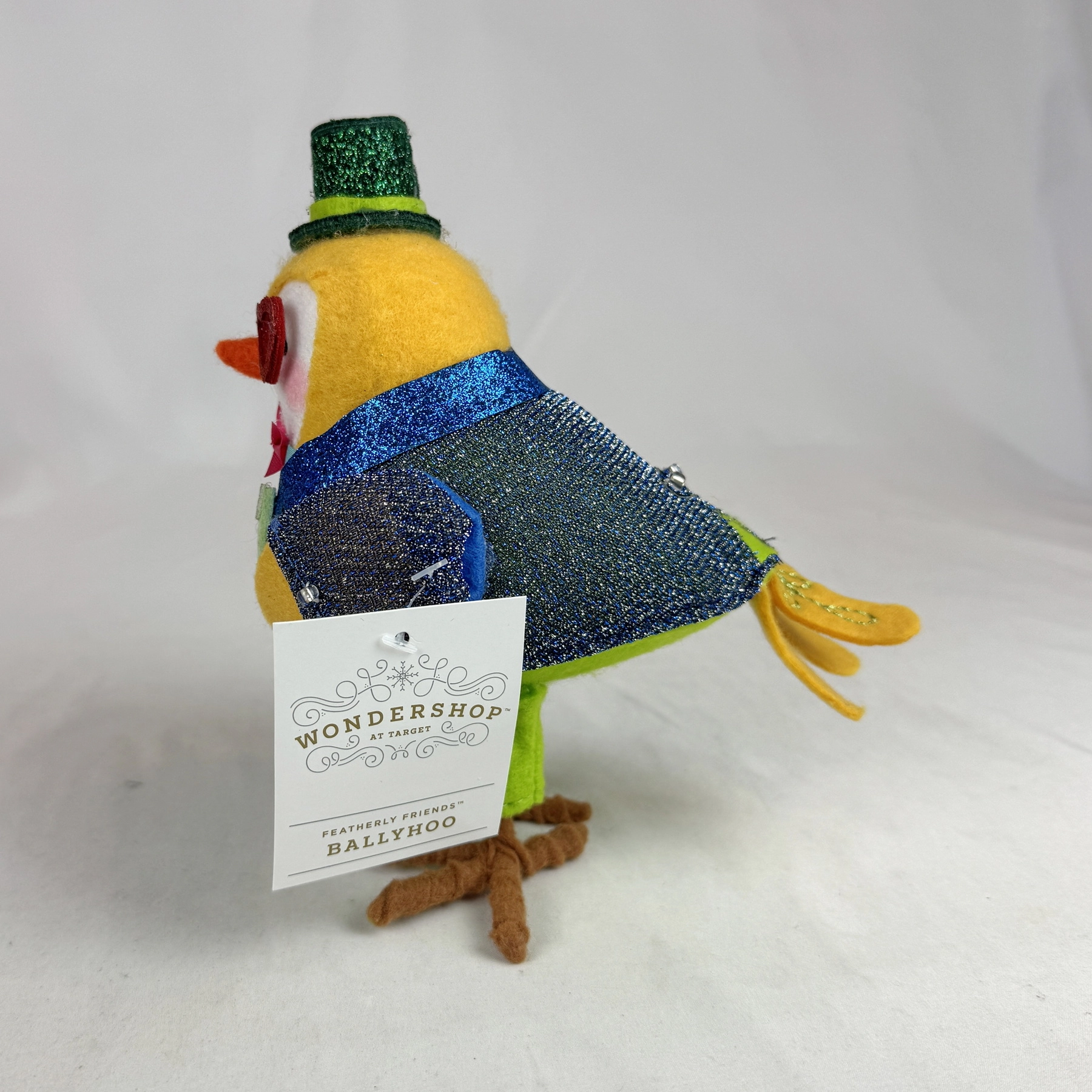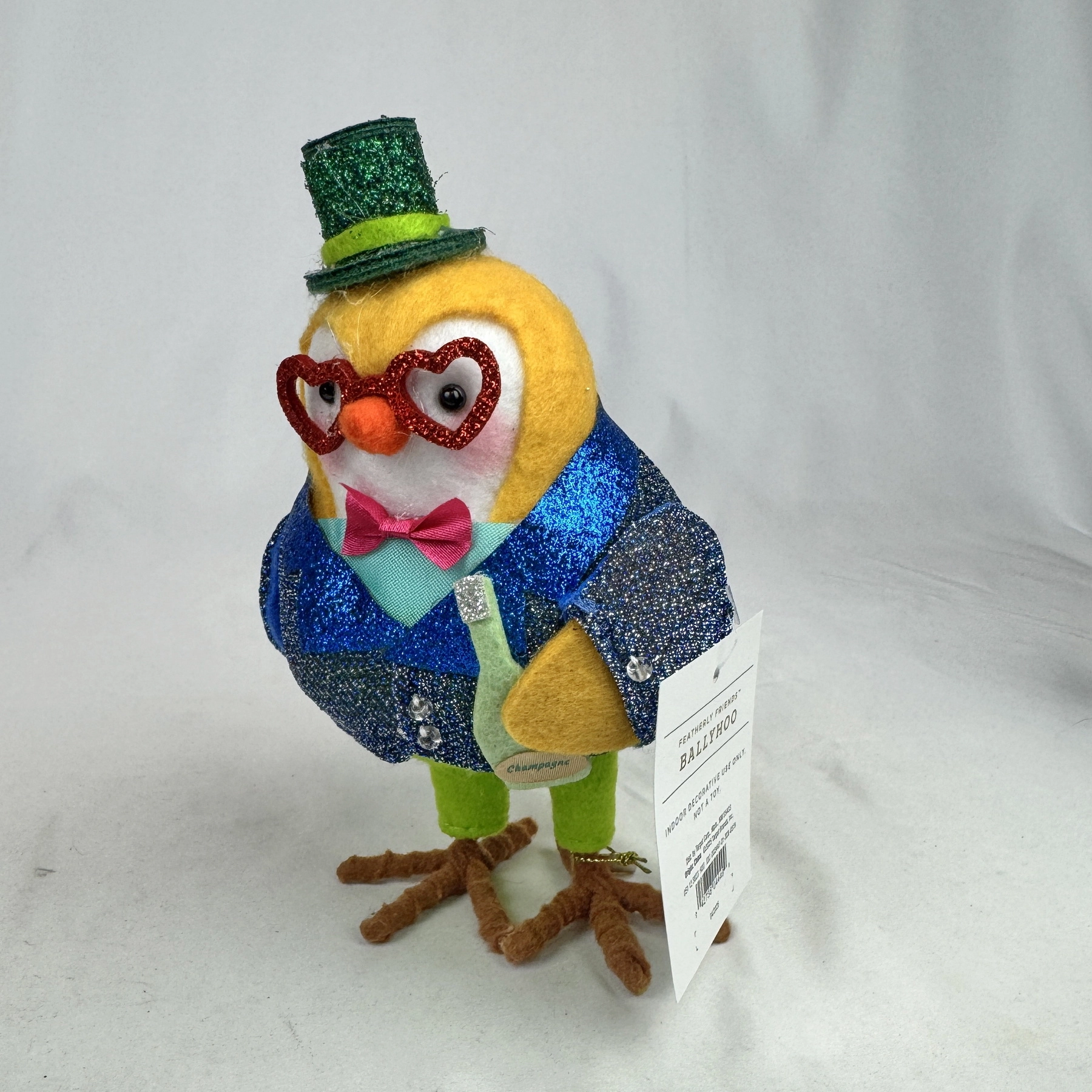 Celebrate the season with “Ballyhoo” from Target’s 2025 Wondershop Featherly Friends collection. This festive fabric bird features a glittery blue jacket, green top hat, heart-shaped glasses, pink bow tie, and a champagne bottle accessory for a fun party-ready look. Freestanding and perfect for mantels, shelves, or tiered trays.