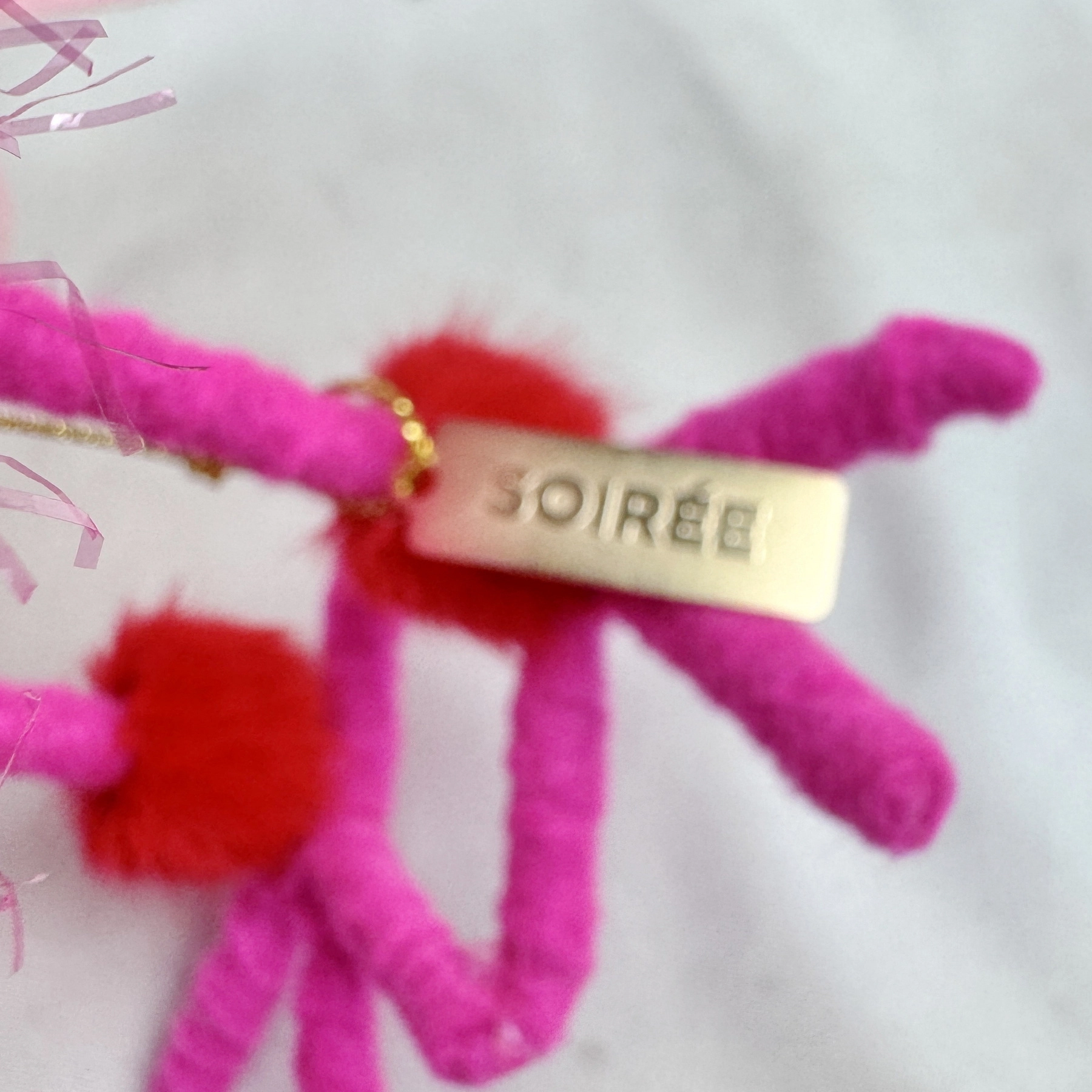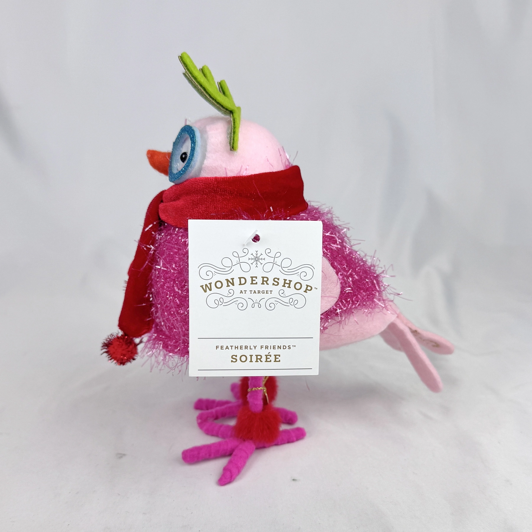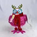 - Pink dress, Glitter Glasses, Fuzzy Accents, Red Scarf, Green Antlers Headband