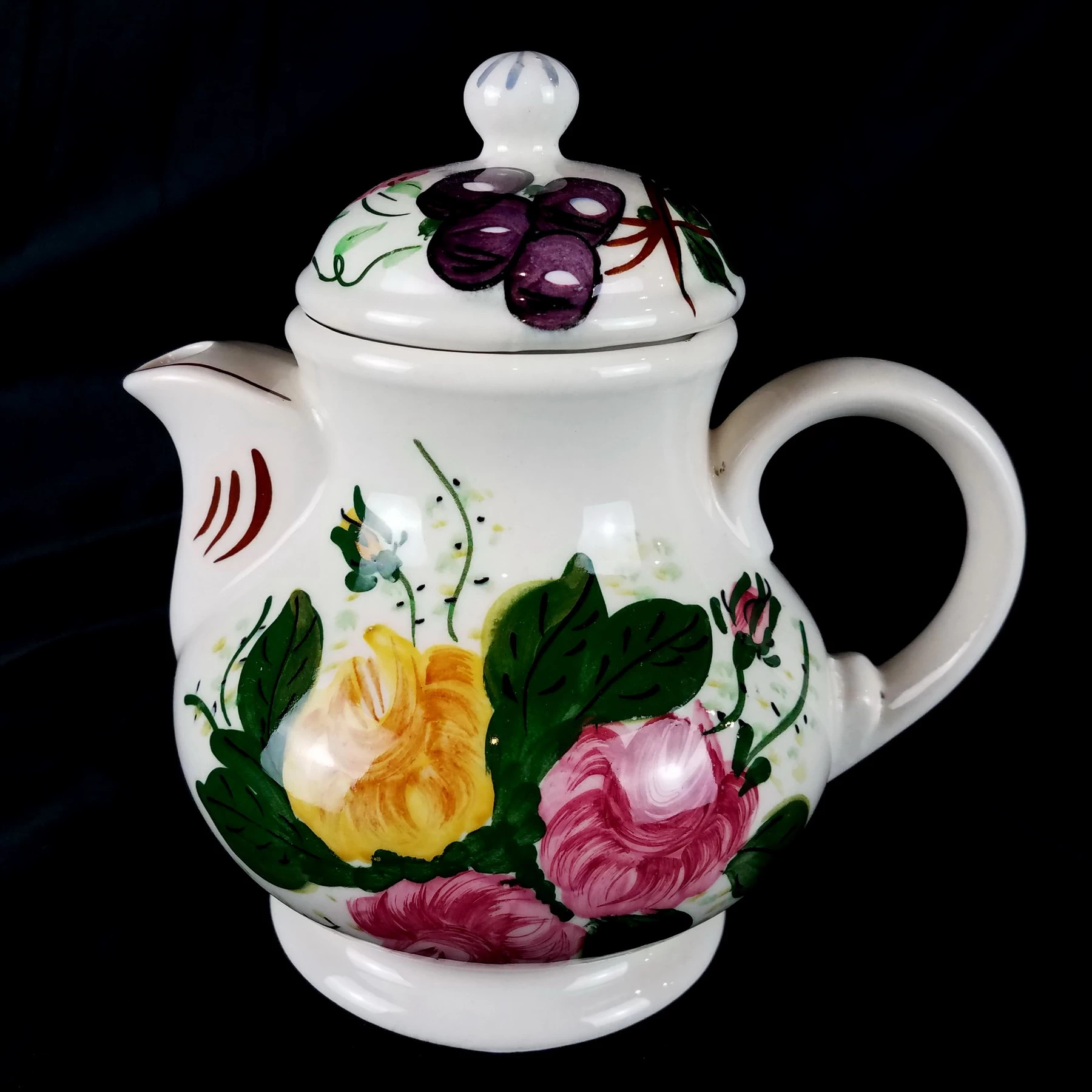 Teapot Blue Ridge Southern Pottery ROSE BOUQUET – Hand Painted USA