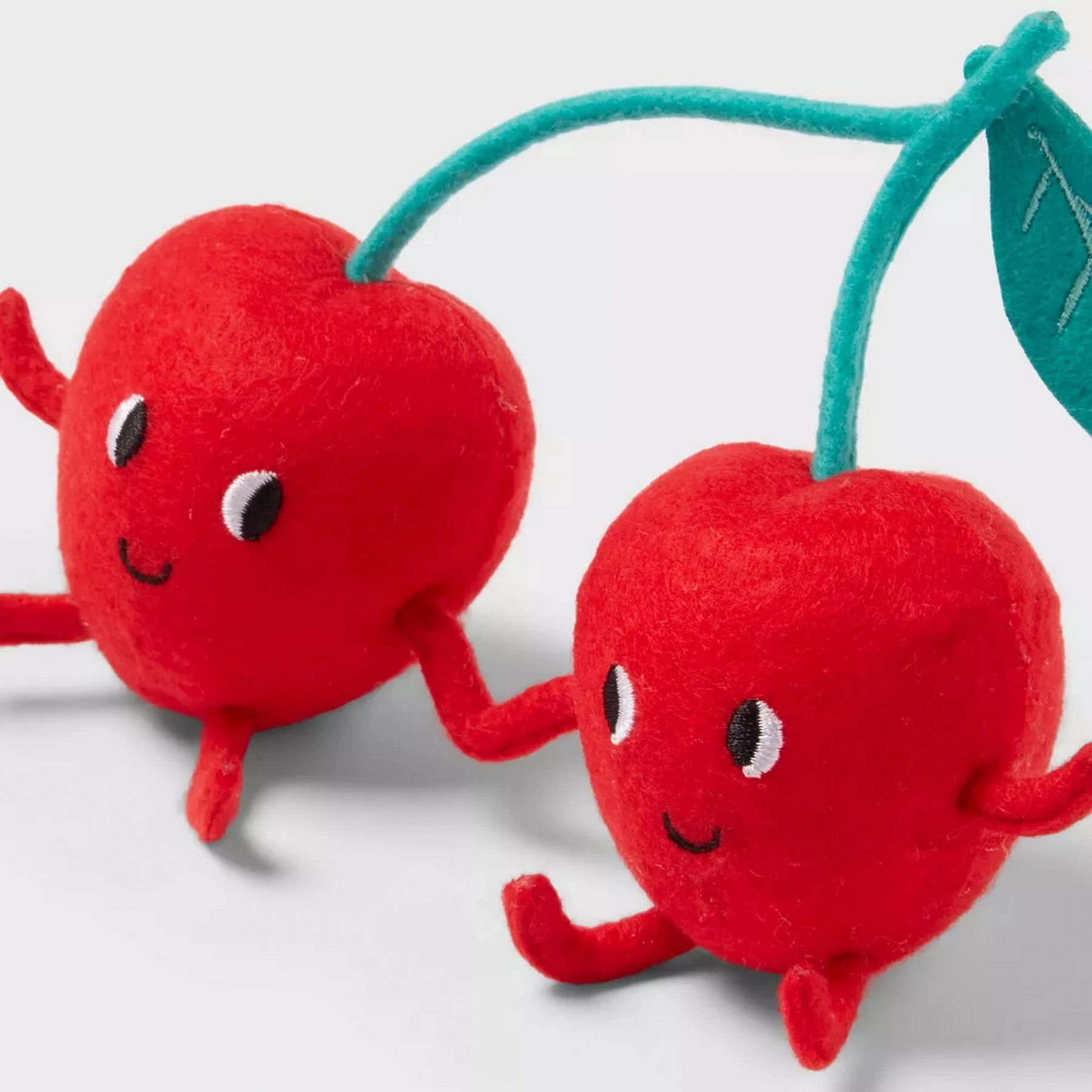 This Valentine’s day felt duo figurines features a pair of red cherries holding hands