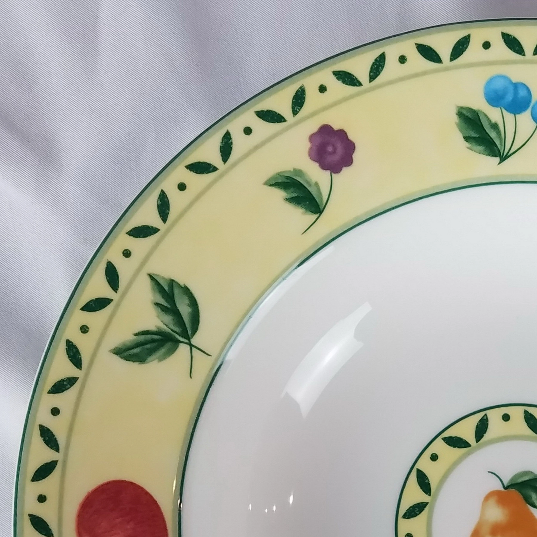 - Fruit & Flowers on Center and Rim, Green Rim
