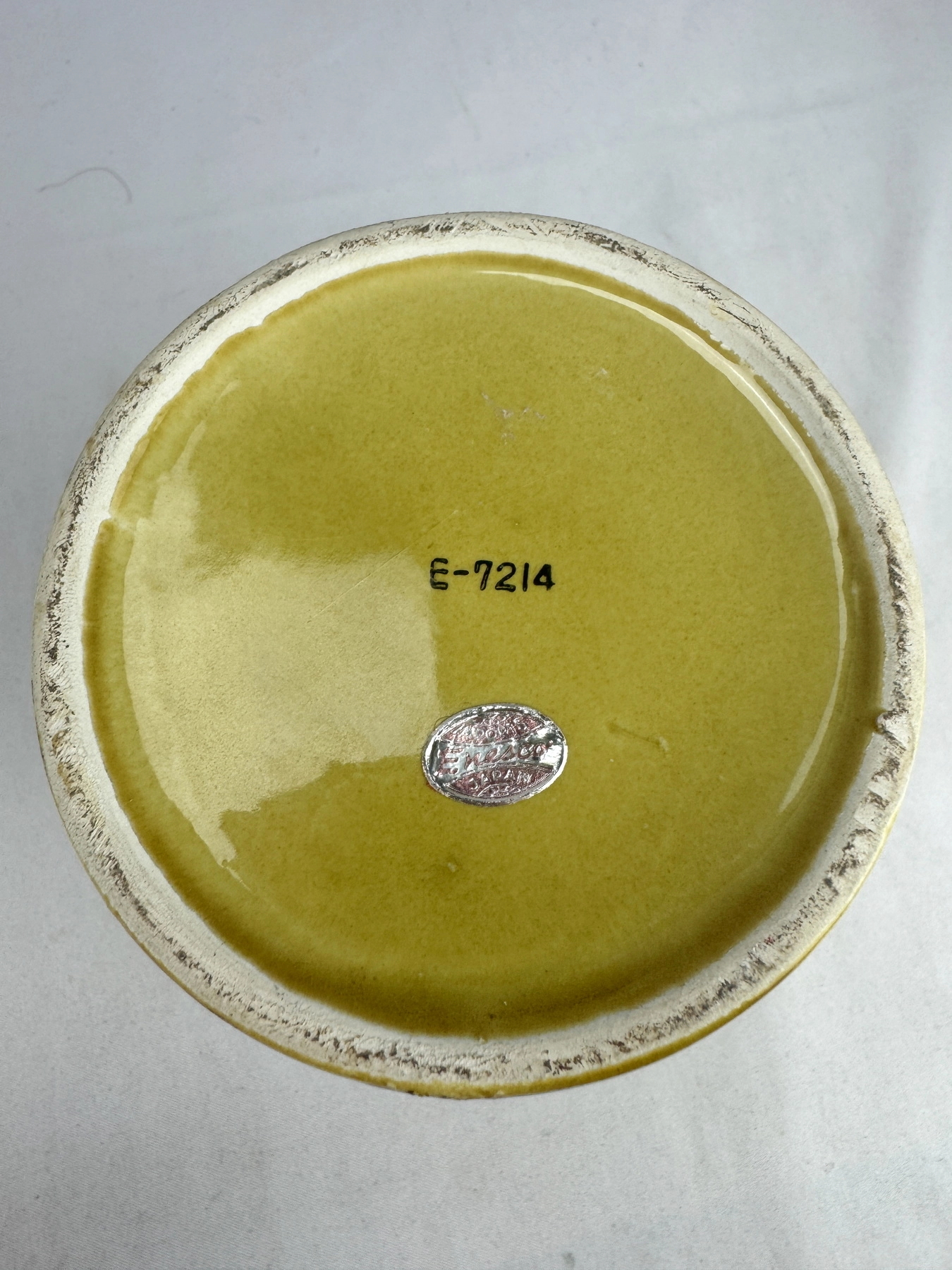 - Excellent Condition. Glaze discoloration line near rim (not a visible structural crack). Light wear consistent with age.