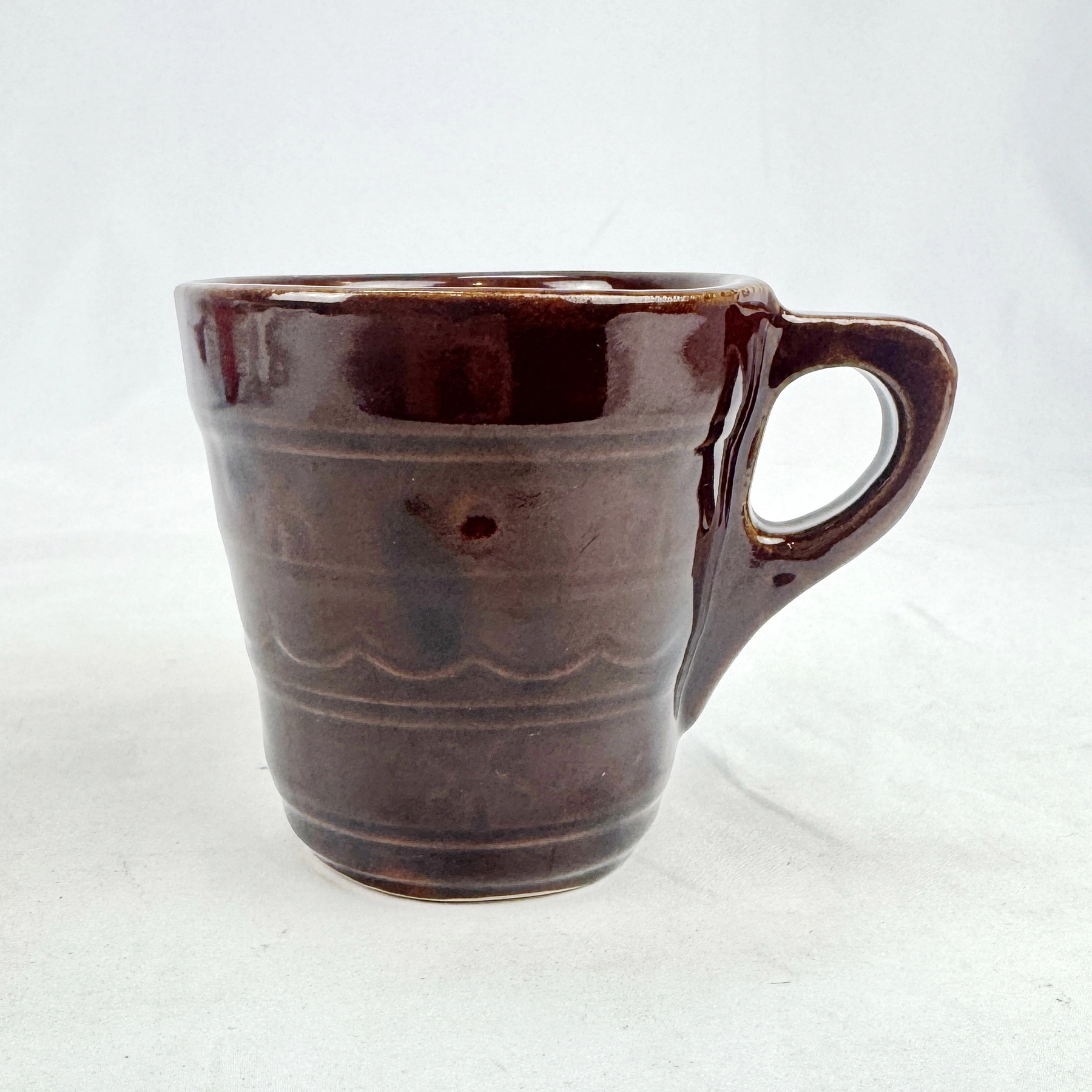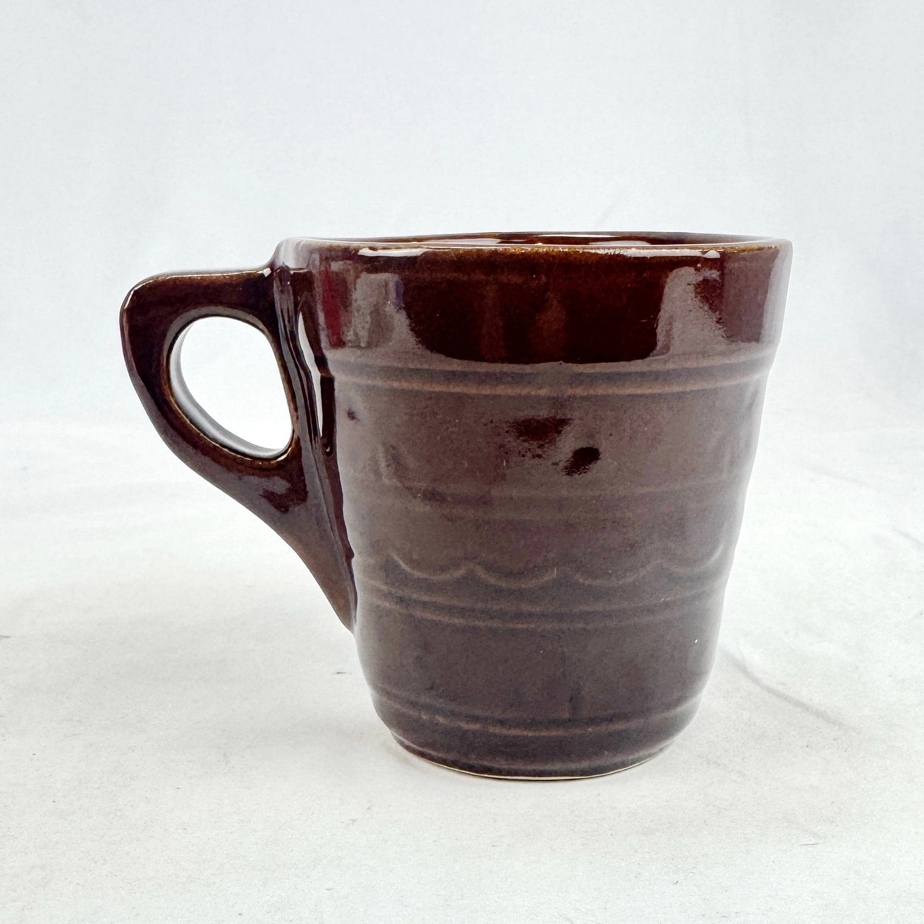 Notes: Dark brown glaze with natural factory glaze variation; see photos for finish, base mark, and condition