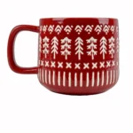 World Market Mug 16oz Christmas Embossed Trees Red White