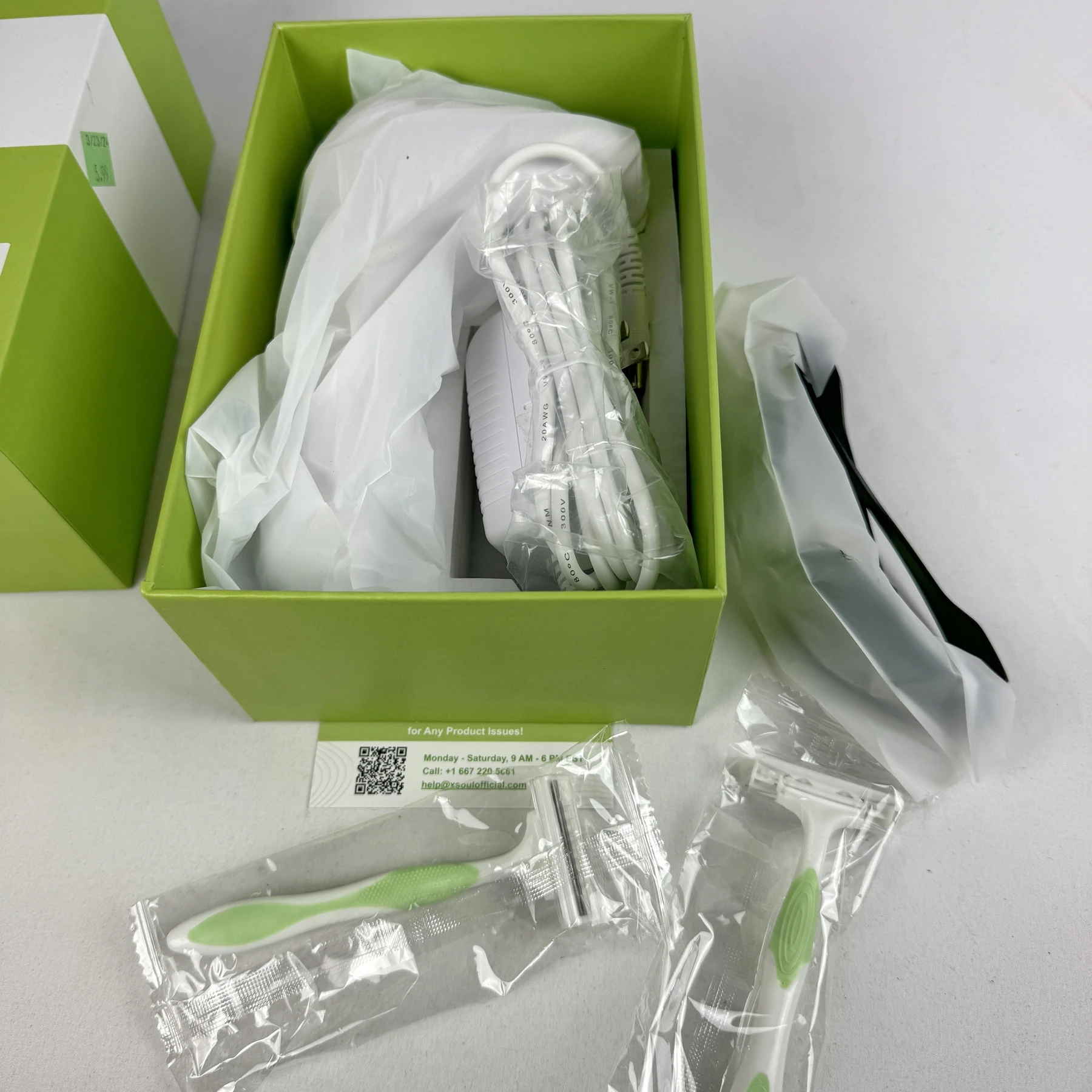 - Package includes: IPL device, razors, protective eyewear, instruction manual, and hair/skin color guide.