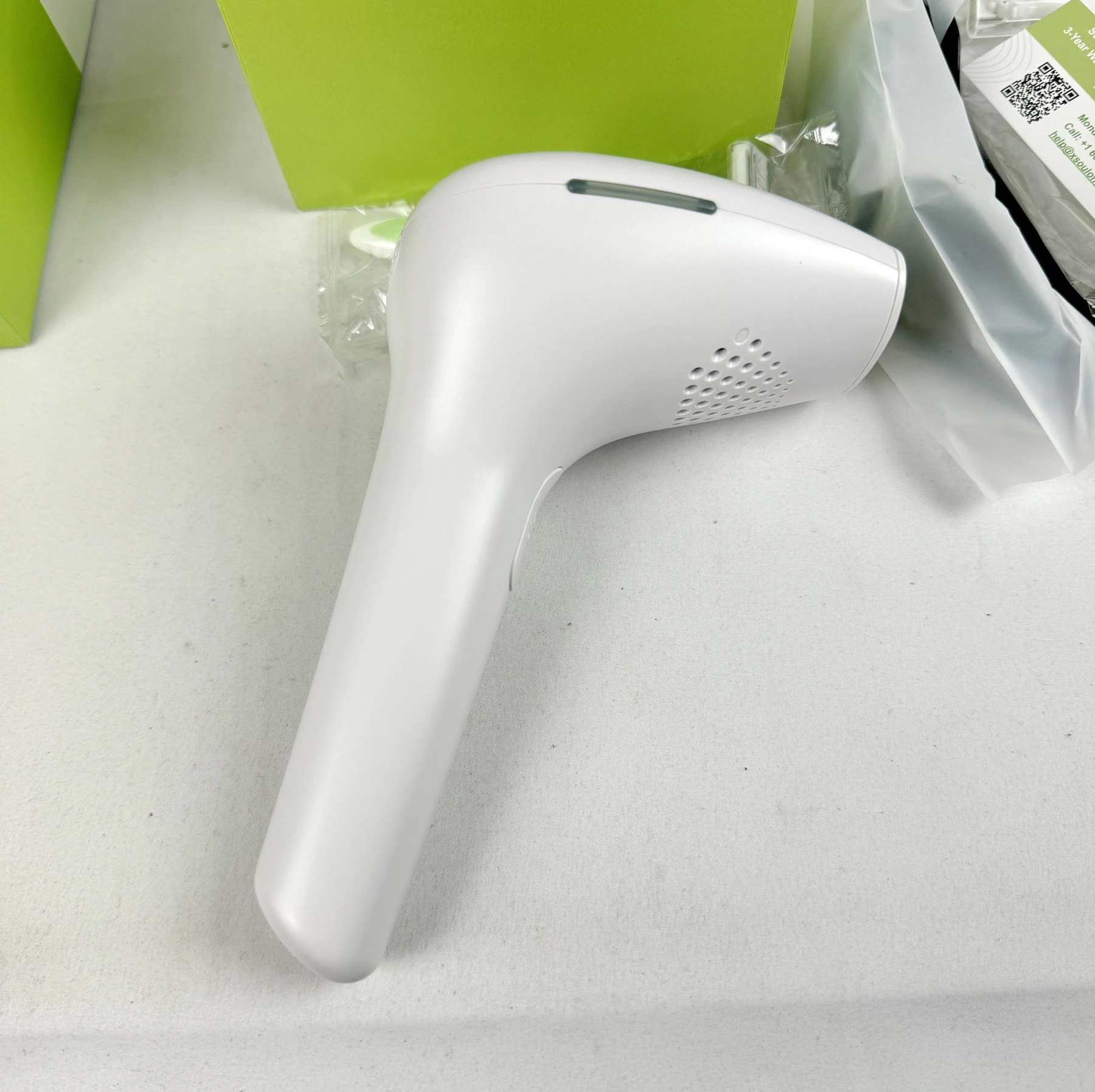 - Advanced IPL technology for permanent hair reduction, mimicking salon results at home.